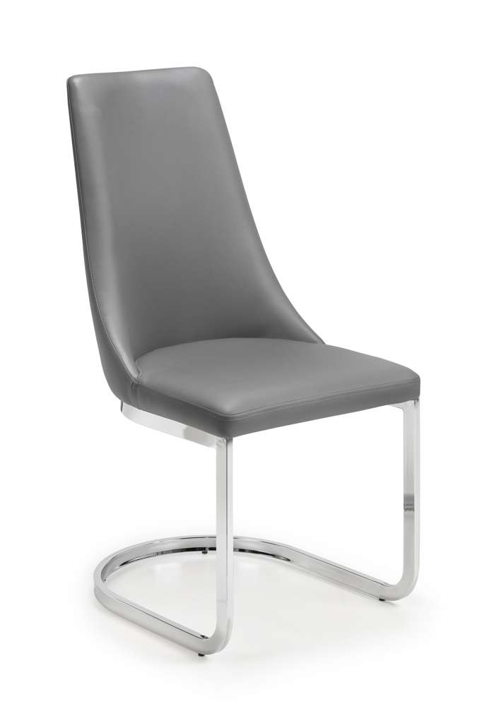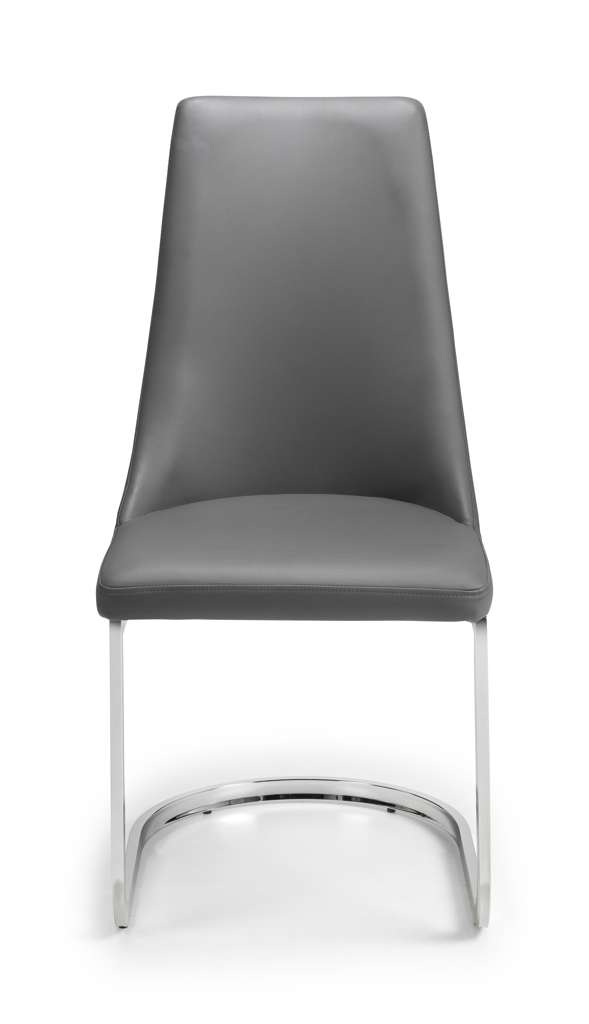 Upholstered in a grey faux leather, the Como Cantilever dining chair offers luxurious comfort. Featuring a chrome curved base, this chair adds class and sophistication to any dining room decor. Simply pair with the Como Extending Dining Table for an sleek, modern look.