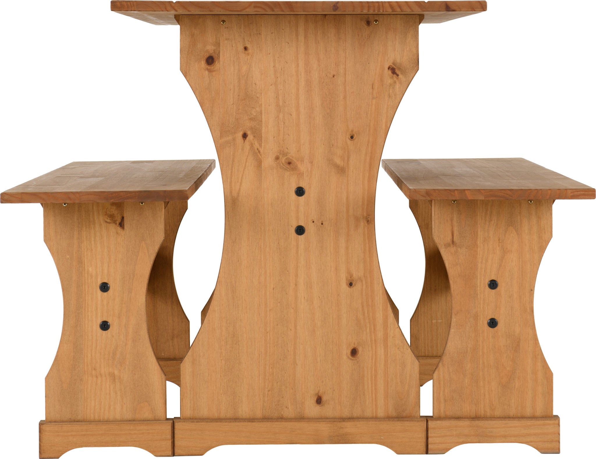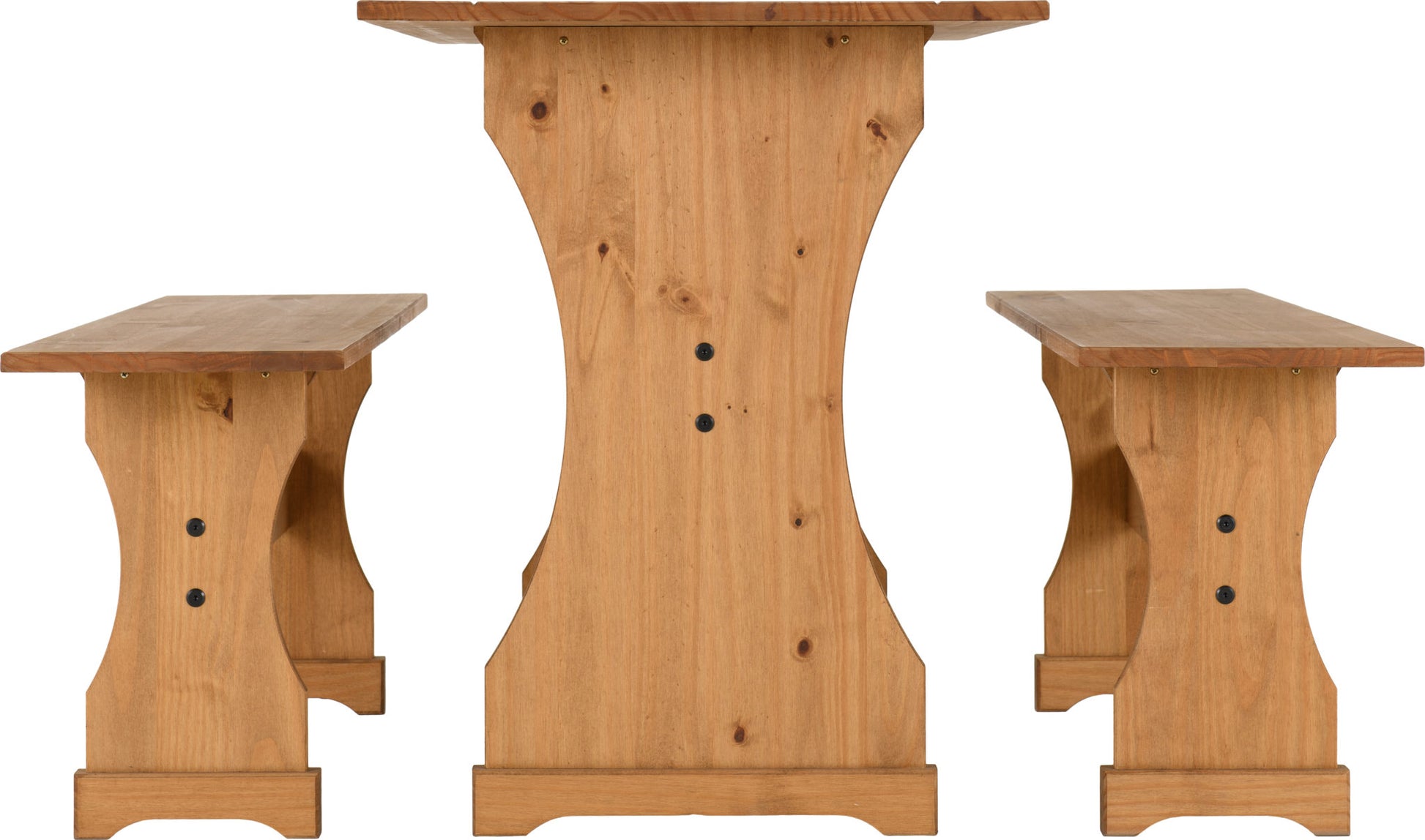 Make space feel calm and considered with the Corona Dinette Set in a Distressed Waxed Pine. Thoughtfully designed for busy family spaces, it offers generous storage for everyday life to keep life neatly organised. Sturdy by design, it pairs simple lines with a quality feel that lasts.