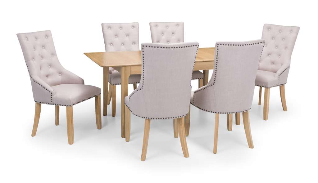 Extending from 140cm to 180cm, the Cotswold Dining Table spaciously seats up to 6 people. Crafted from solid oak and oak veneers, the Cotswold highlights the natural beauty of the wood through the grain creating a traditional style with a clean and simple design. Pair with the Cotswold Dining Chairs for an eye-catching dining set. Part of the Julian Bowen Cotswold Dining and Occasional Collection.