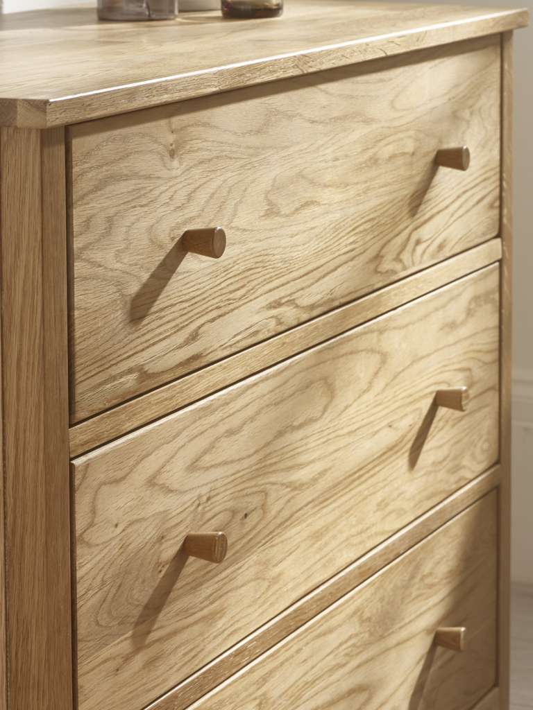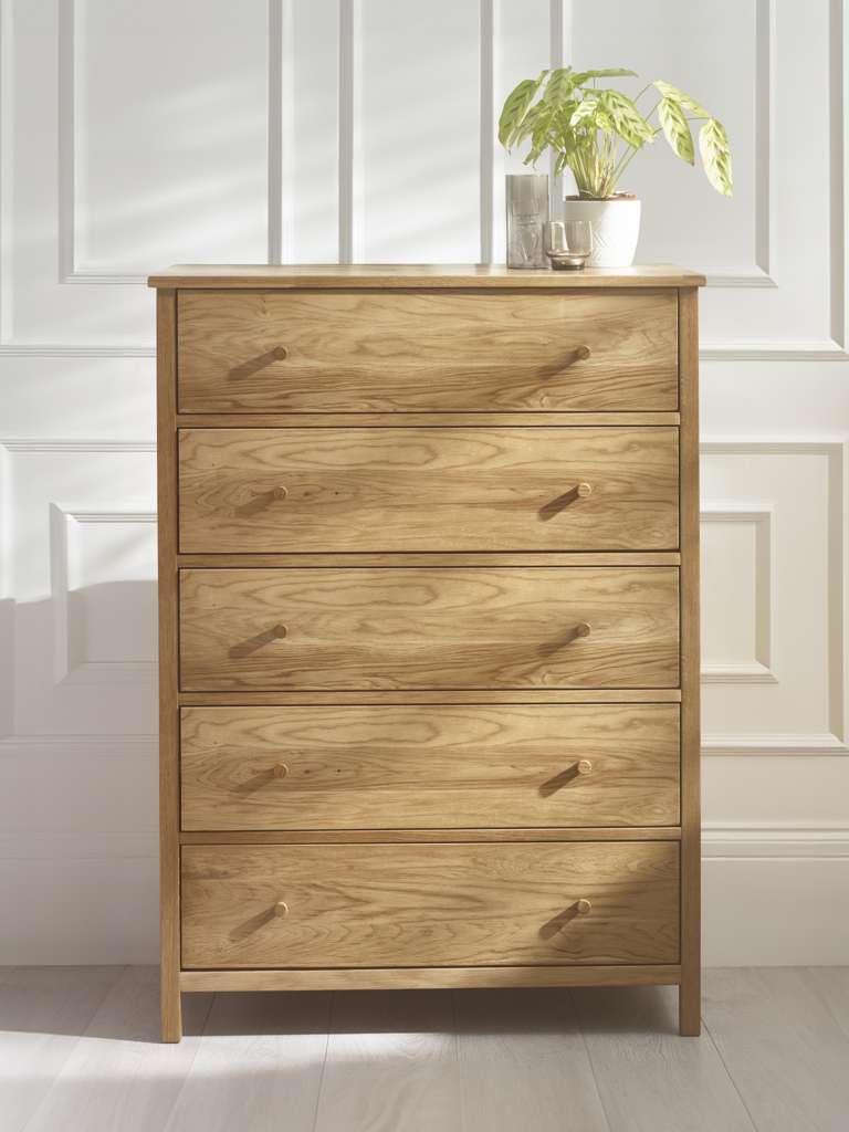 Upgrade your bedroom storage with the Coxmoor 5 Drawer Wide Chest in oak. Featuring five spacious drawers each fitted with stylish knob handles, this wide chest provides an abundance of room for your clothing, bedding, and more, all while enhancing your room with its sleek, oak-finished design. The horizontal profile offers both practicality and a stylish focal point, making it ideal for bedrooms that need extra storage without sacrificing elegance. Built to last with a classic oak finish, this chest seamlessly balances form and function for a timeless addition to any home. Requires minimal assembly.