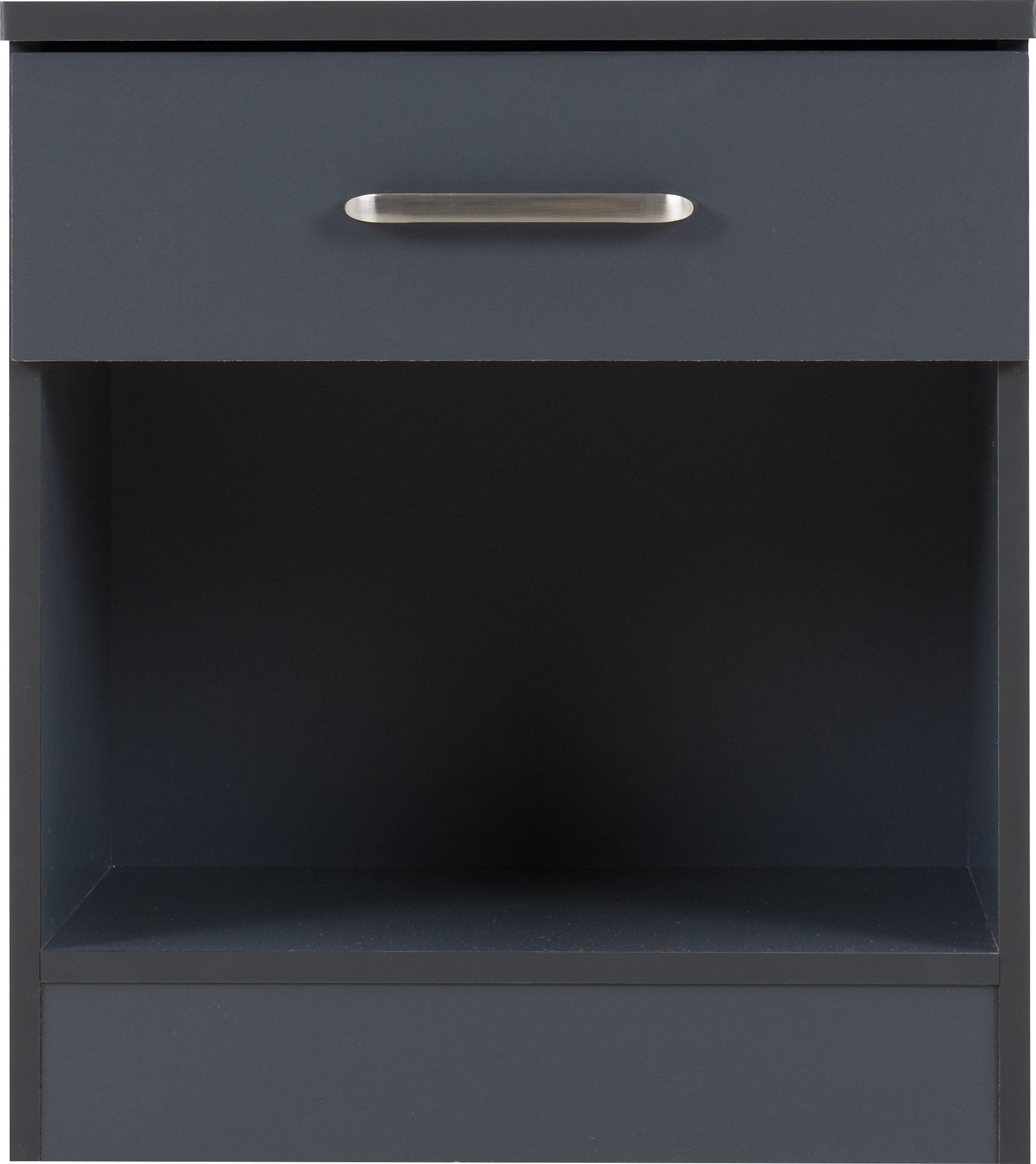 The Dakota 1 Drawer Bedside finished in Dark Grey adds a homely touch with a modern edge. Thoughtfully designed for busy family spaces, it offers practical space for clothes and essentials to keep life neatly organised. Clean lines and a durable build make it an easy fit in both modern and classic rooms.