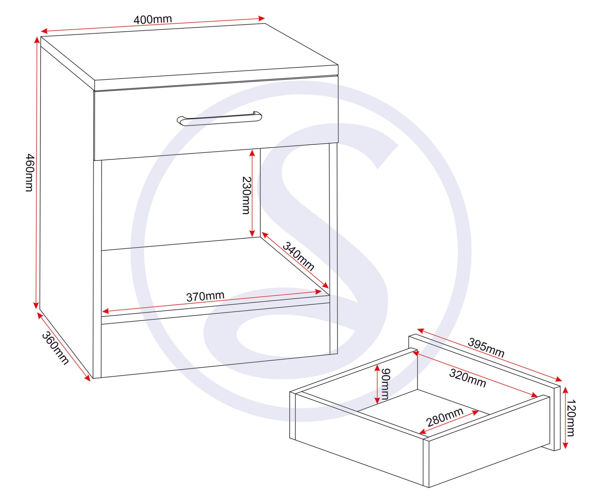 Dakota 1 Drawer Bedside - LIGHT GREY