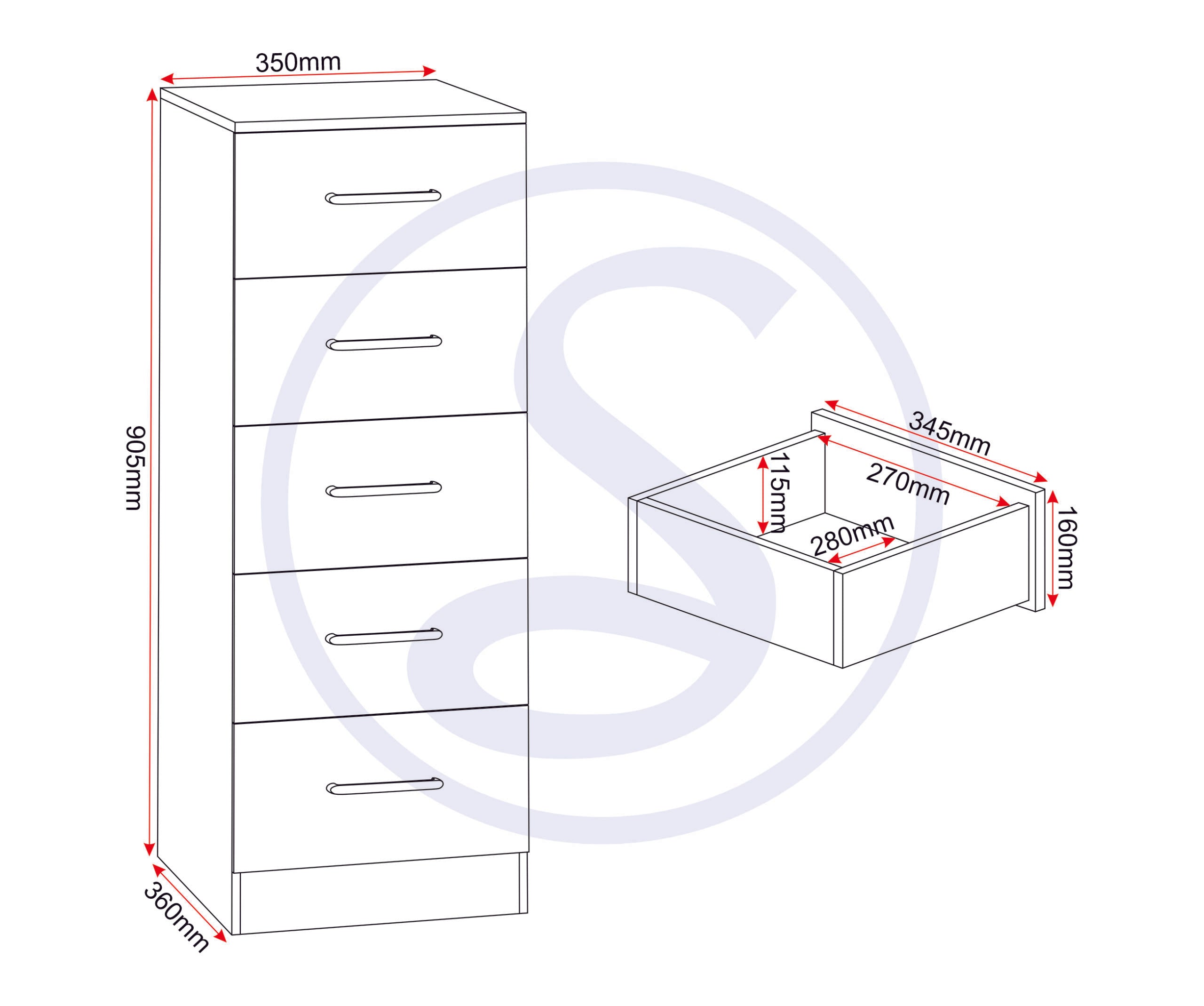 Dakota 5 Drawer Narrow Chest - DARK GREY