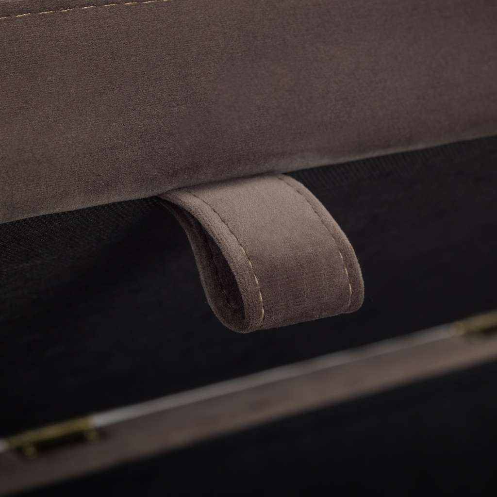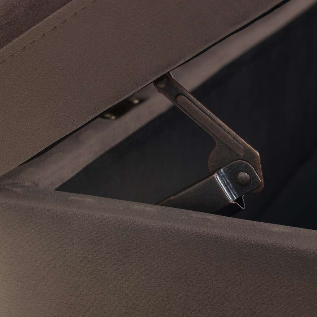 Perfectly proportioned to sit at the end of the Julian Bowen Deco bed, this contemporary Deco blanket box is upholstered in a truffle velvet fabric with complimentary gold metal legs. This contemporary design offers a unique, timeless appeal. The perfect storage for your cushions, linens, or duvets with the ease of soft close hinges.