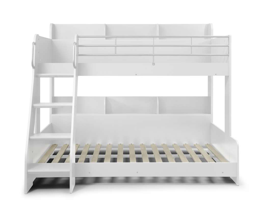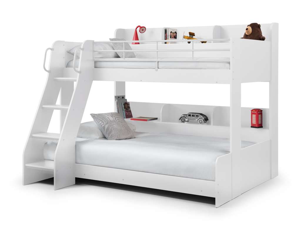 In a choice of white or light grey finish, the Domino Triple Sleeper is the perfect bed for your little ones. With the lower bunk accommodating two children, and the top bunk an additional one, Domino maximises floor space by combining three sleeping solutions using the space of one. Multifaceted and extremely functional in design, this bed can be adapted to suit your childâs needs. The classic design and finish of this bed means it is not limited to childrenâs bedrooms but is ideal for guestrooms too.