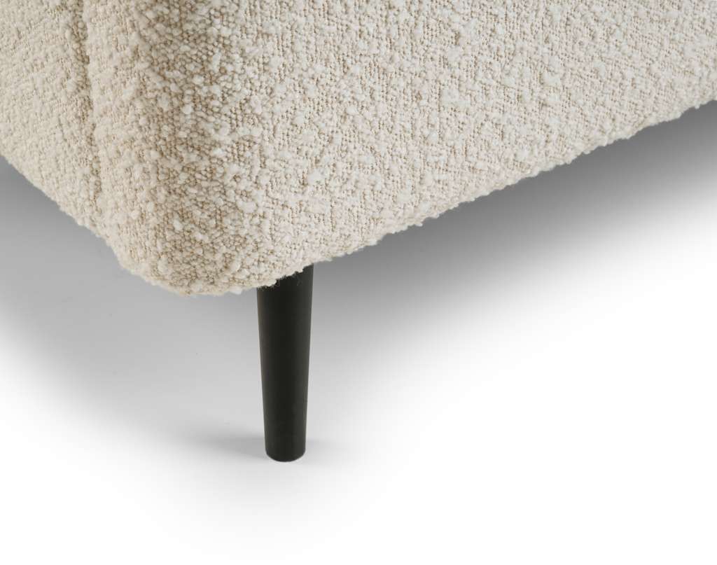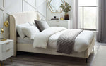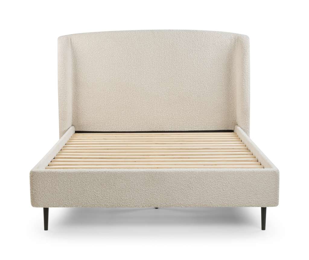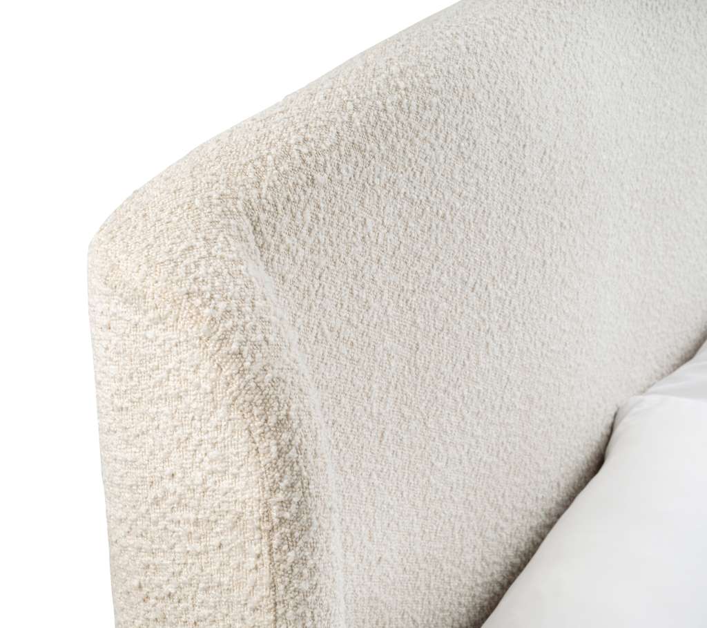 The Eden Boucle Bed excels in class and elegance bringing a sense of style and comfort to any modern bedroom space. Featuring a curved headboard and finished in a stunning ivory boucle with black legs.