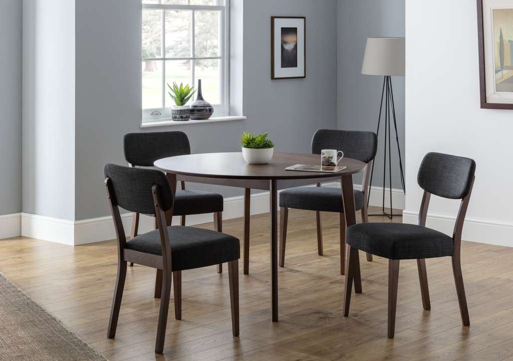 Offering hints of retro and Scandinavian designs, the Farringdon Dining Chair brings a touch of mid-century sophistication through a fashionable combination of shapes and forms. Upholstered in a grey linen fabric, this dining chair features an open back seat finished with a rich walnut frame. Perfect match for the Farringdon Round Dining Table.