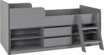 Bring warmth and everyday style to your home with the Felix Low Sleeper Bed in a Grey finish. Thoughtfully designed for busy family spaces, it offers generous storage for everyday life to keep life neatly organised. Clean lines and a durable build make it an easy fit for both modern and classic rooms. Built to look good and work hard for years to come.