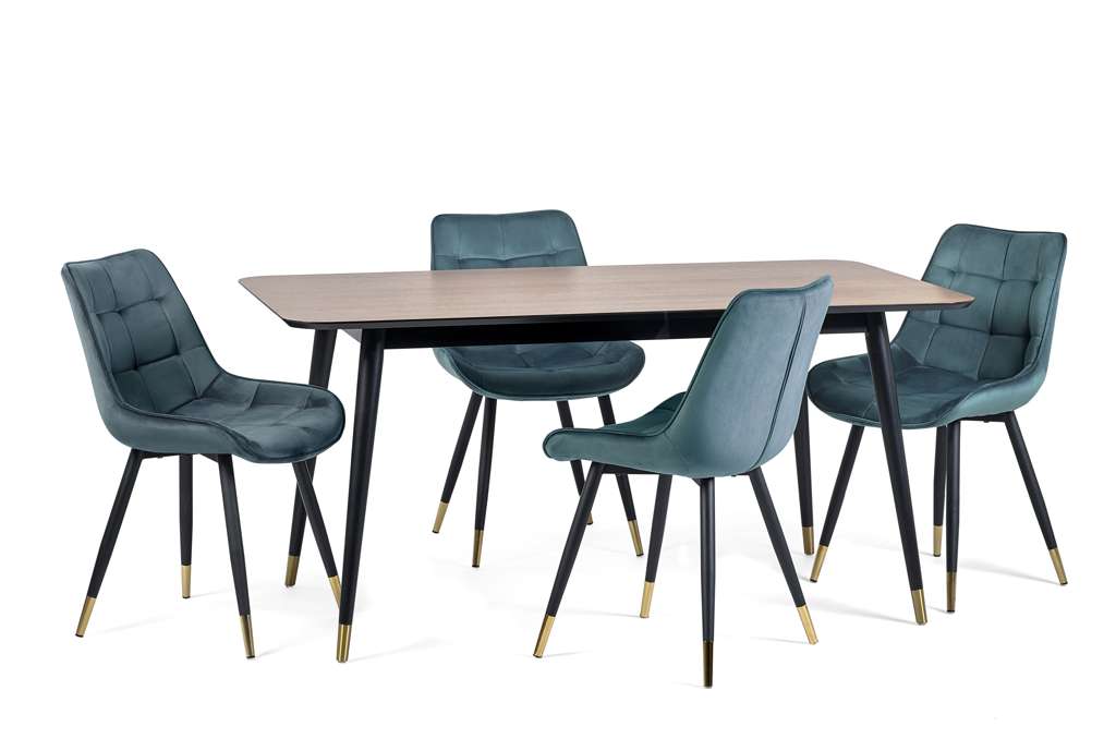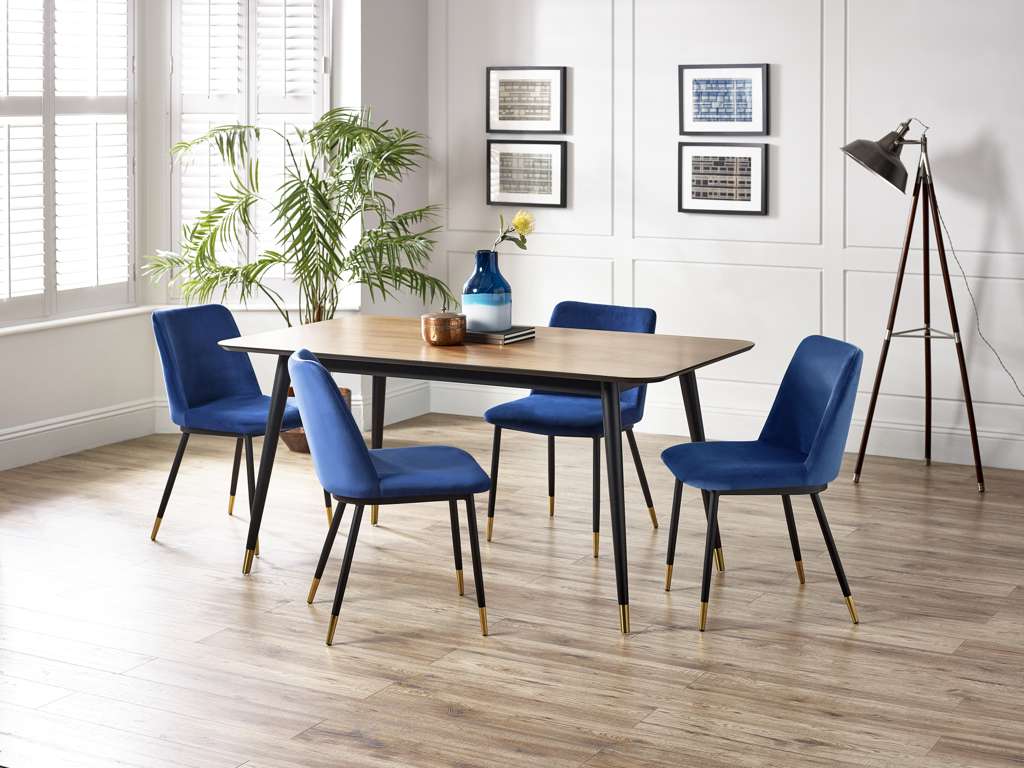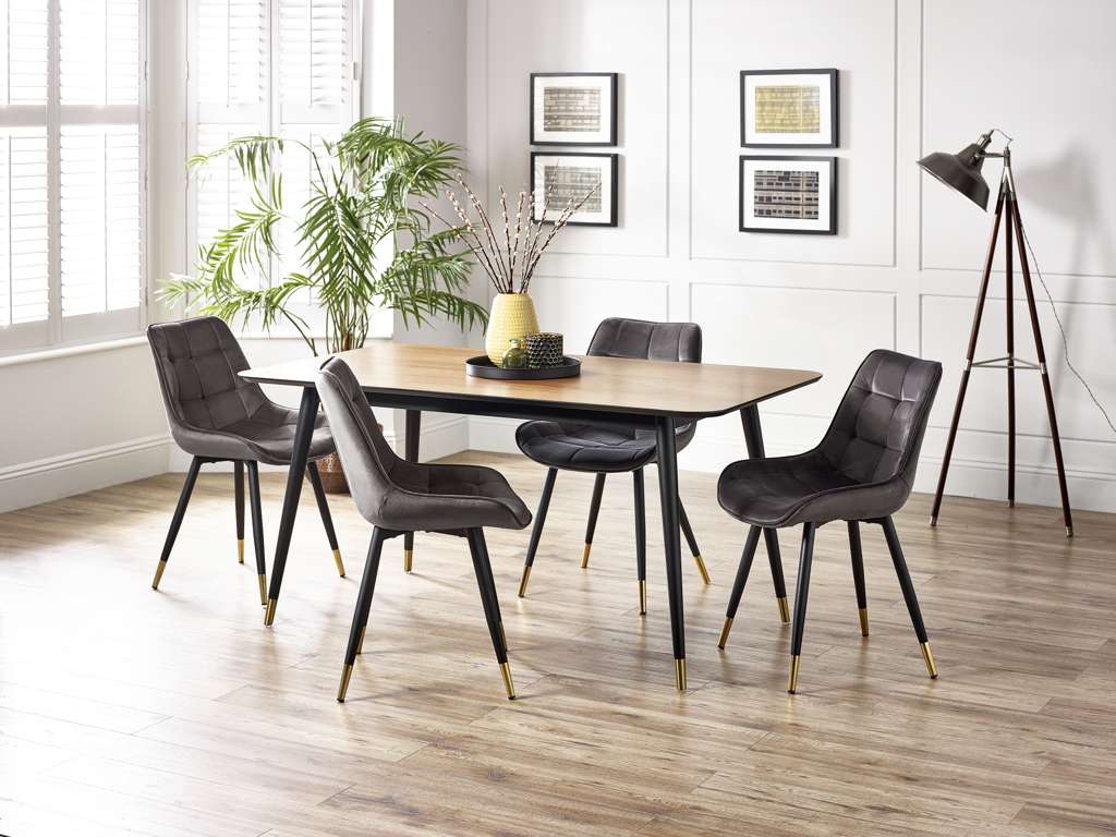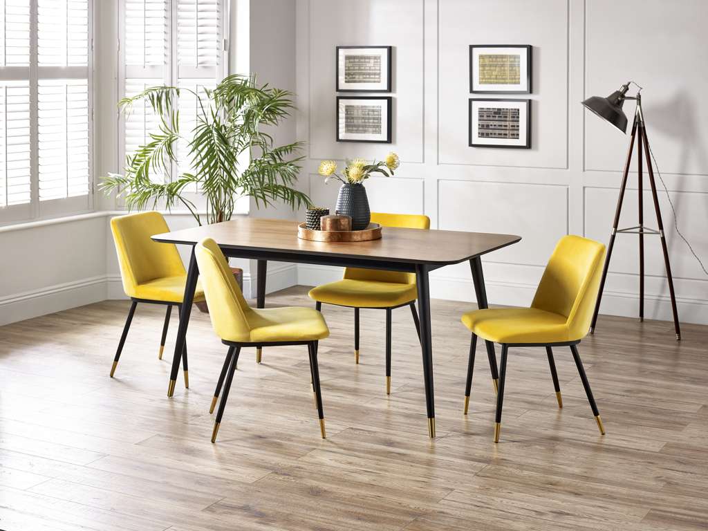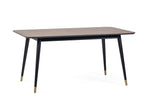 The Findlay collection combines retro design elements with a modern twist. With a walnut finish and brass tipped legs â this collection will uplift an eclectic range of décor styles. This collection includes a rectangular dining table, square dining table, coffee table, lamp table, and media unit.