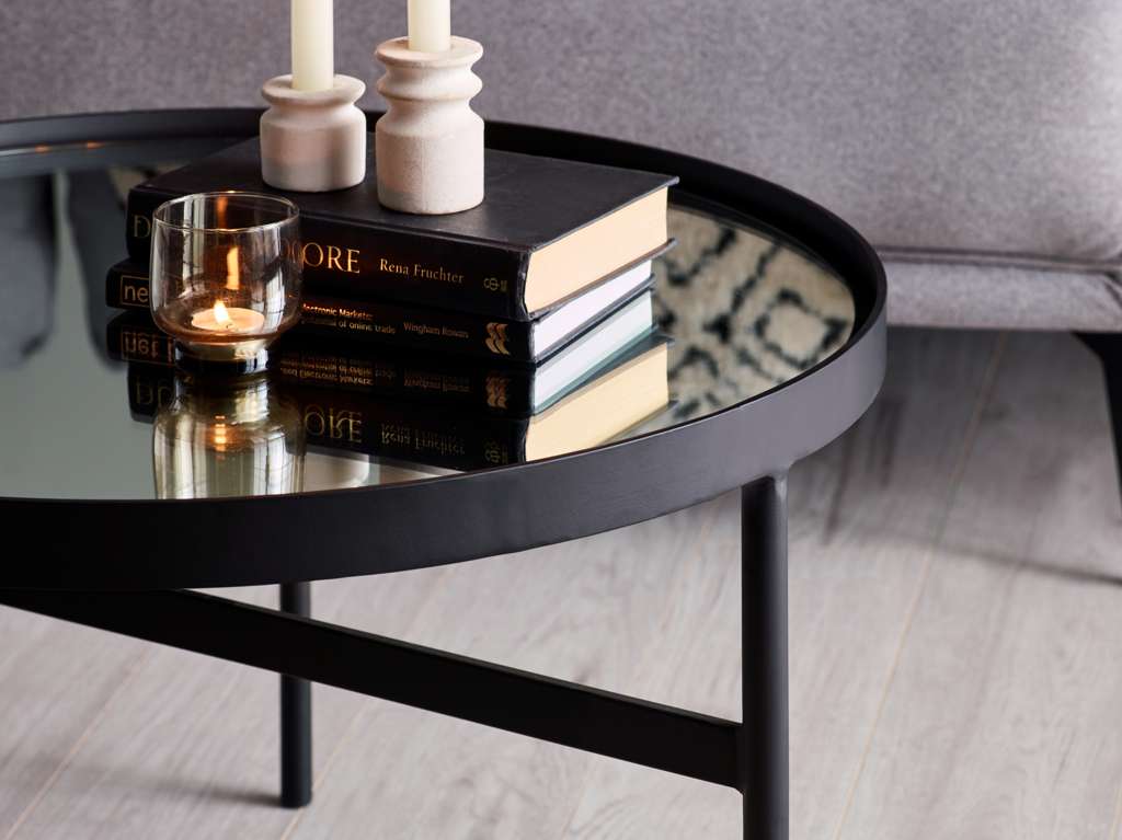 Upgrade your living room with the Franki Mirror Glass Coffee Table, a contemporary take on classic design. Its sleek mirrored tabletop brings a touch of glamour and adds a sophisticated shine, reflecting light and creating a spacious feel. The black metal frame offers a bold contrast, while the raised barrier design gives it a unique twist. This stylish piece is designed for easy assembly, making it a hassle-free addition to your home decor.
