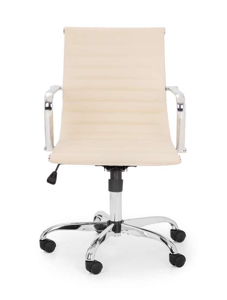 Crafted from faux leather with a chrome plated frame, the Gio office chair is available in Black, Ivory, or Brown to match your office décor. The Gio Office Chair features a star base with five castors, allowing the chair to move smoothly around the room. The adjustable seat height and high backrest allows you to reach maximum comfort throughout your working day.