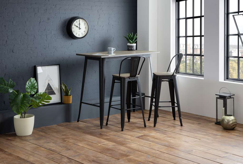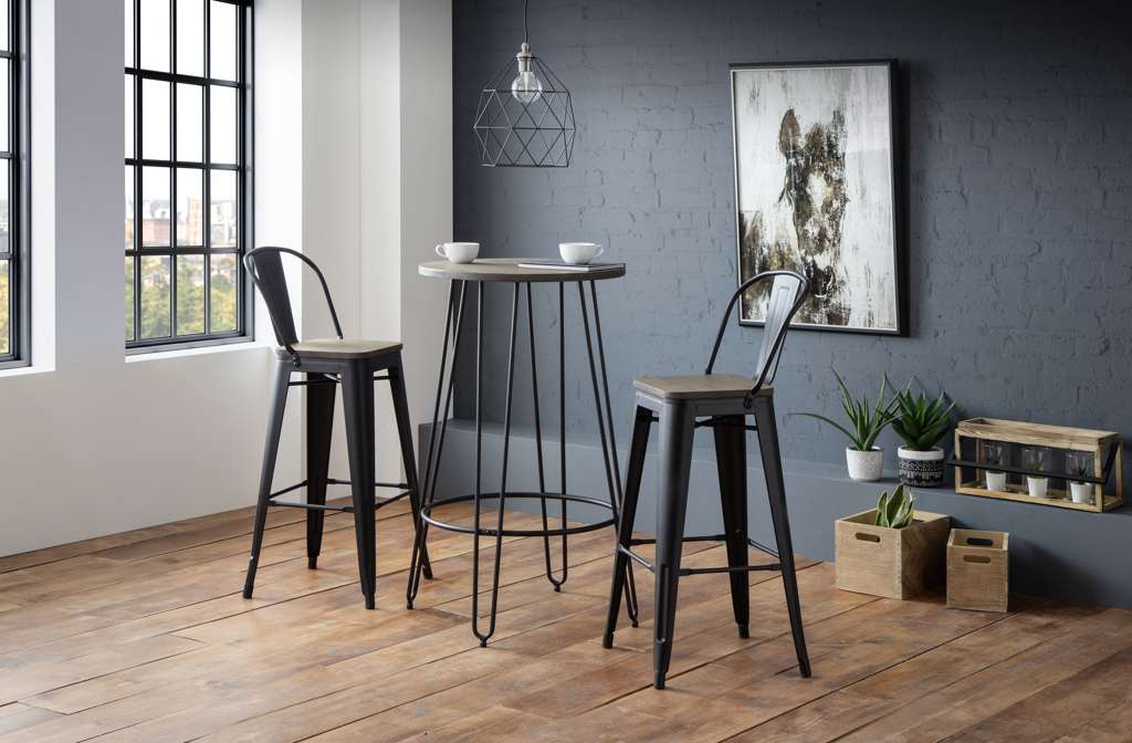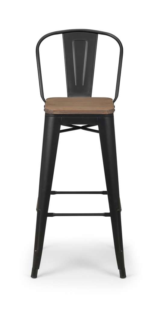 Crafted from solid Elm wood and satin black powder coated steel, The Grafton Bar Stool is perfect for any bar or high table. Featuring an open curved back for extra comfort, the Grafton Bar Stool will add an industrial touch to any room. Perfect match for the Grafton Bar Table.