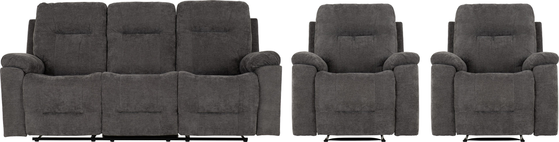 The Guildford 3+1+1 Recliner Suite in a Grey Fabric adds a homely touch with a modern edge. Everyday-friendly and tidy, it offers three generous drawers plus one doors you'll use from day one. Its pared-back look sits comfortably with a range of interiors, from cosy to contemporary.