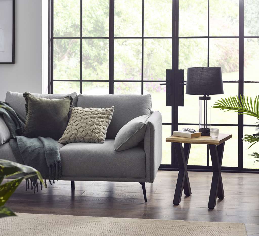 Add a touch of sophistication to your home with the Harvey Lamp Table. Featuring an oak-effect top with an eye-catching waved edge, this piece blends natural charm with a modern edge. The sleek matt black steel crossed legs provide a striking contrast, making it a stylish addition to any room. Perfect for holding a lamp, books, or decor, it effortlessly combines practicality with standout design. Simple assembly is required, so you can enjoy it in no time.