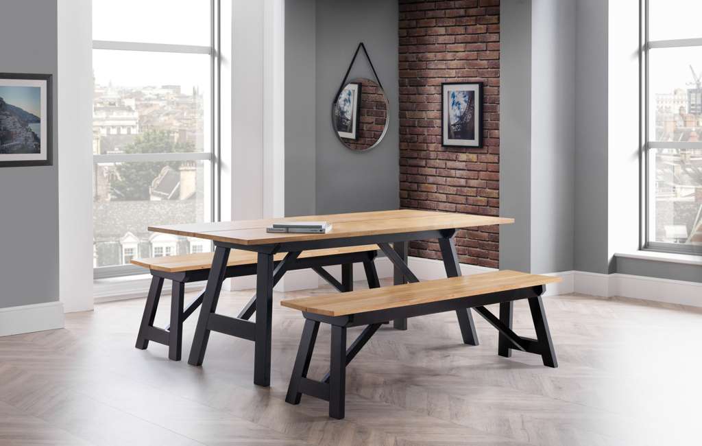 Featuring a 25mm rubberwood top, the Hockley dining table displays the natural colour and unique grain of the wood. A contrasting painted black rubberwood frame allows this dining table to be suitable for a wide range of décor. The perfect match for the Hockley Bench and Hockley Dining Chairs.