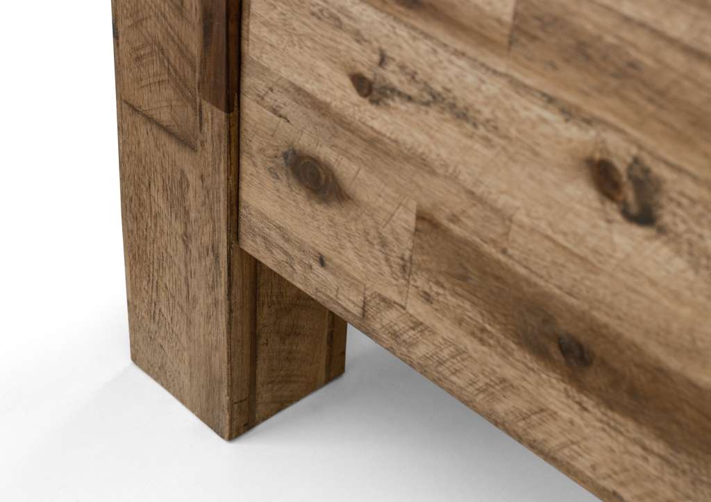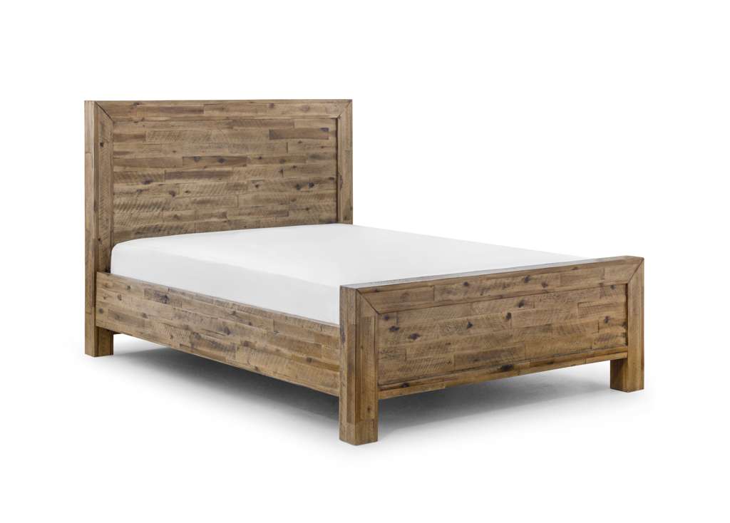 The Hoxton Bed is crafted from solid acacia, in a rustic oak finish and has a solid, unfussy design. Allowing the natural beauty of the wood to shine through with its distinctive lines, this contemporary bed is available in a 135cm double, 150cm king, and 180cm sizes. Perfect for adding a touch of industrial chic to any bedroom.
