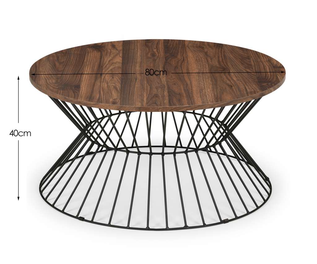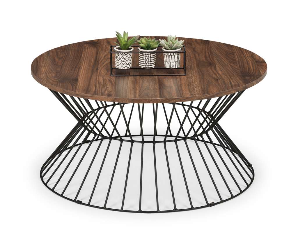The Jersey Coffee Table will add a contemporary addition to any living area. Featuring a black wire frame with a fixed round walnut effect top, this coffee table creates a striking industrial feel with a classic contrast.