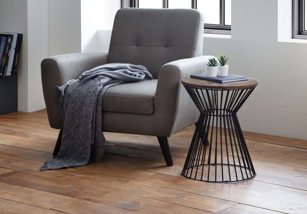 The Jersey Lamp Table will add a contemporary addition to any living area. Featuring a black wire frame with a fixed round walnut effect top, this lamp table creates a striking industrial feel with a classic contrast.