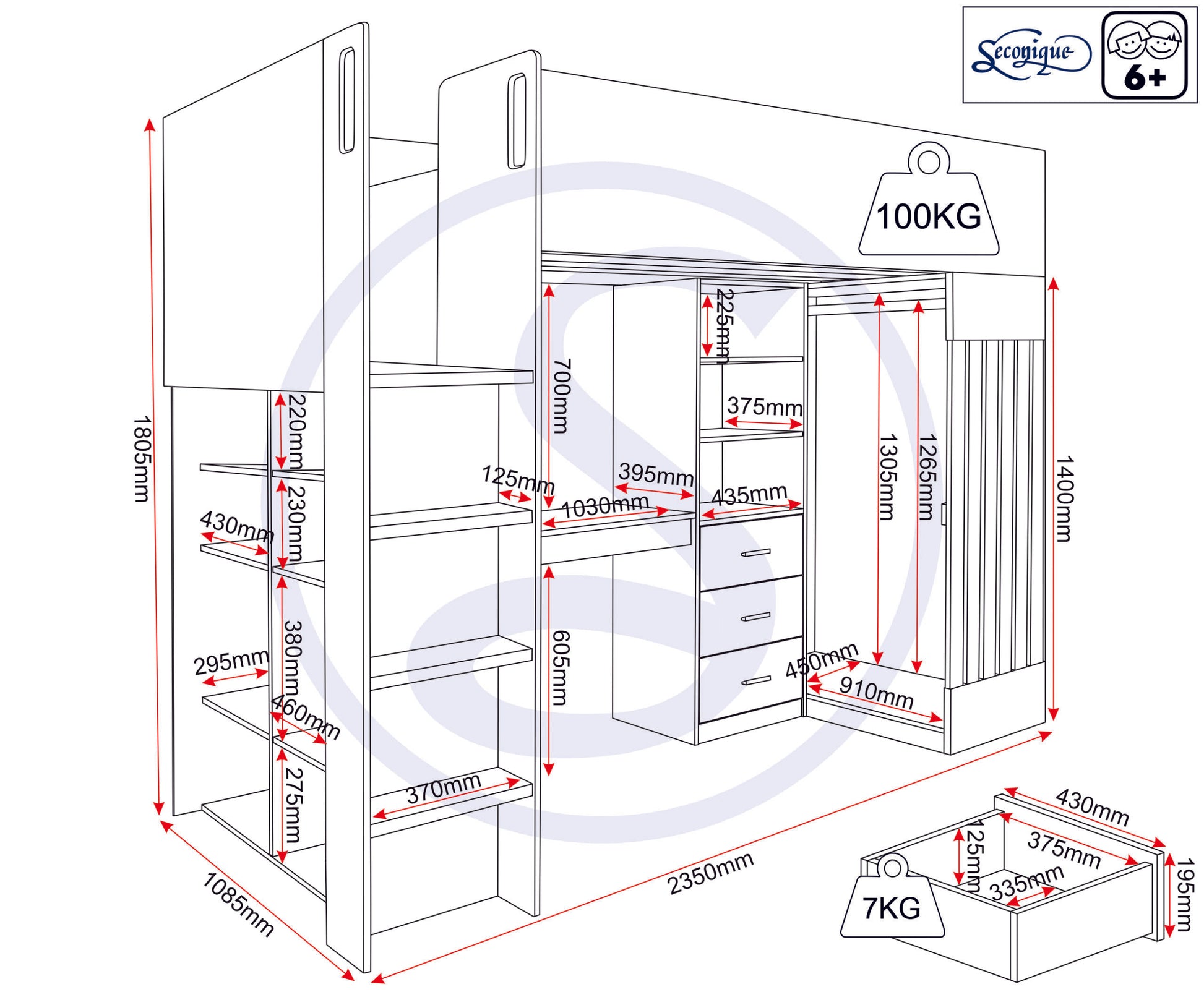 Bring warmth and everyday style to your home with the Jupiter High Sleeper Bed in a White/Grey finish. Thoughtfully designed for busy family spaces, it offers generous storage for everyday life to keep life neatly organised. Clean lines and a durable build make it an easy fit for both modern and classic rooms. Built to look good and work hard for years to come.