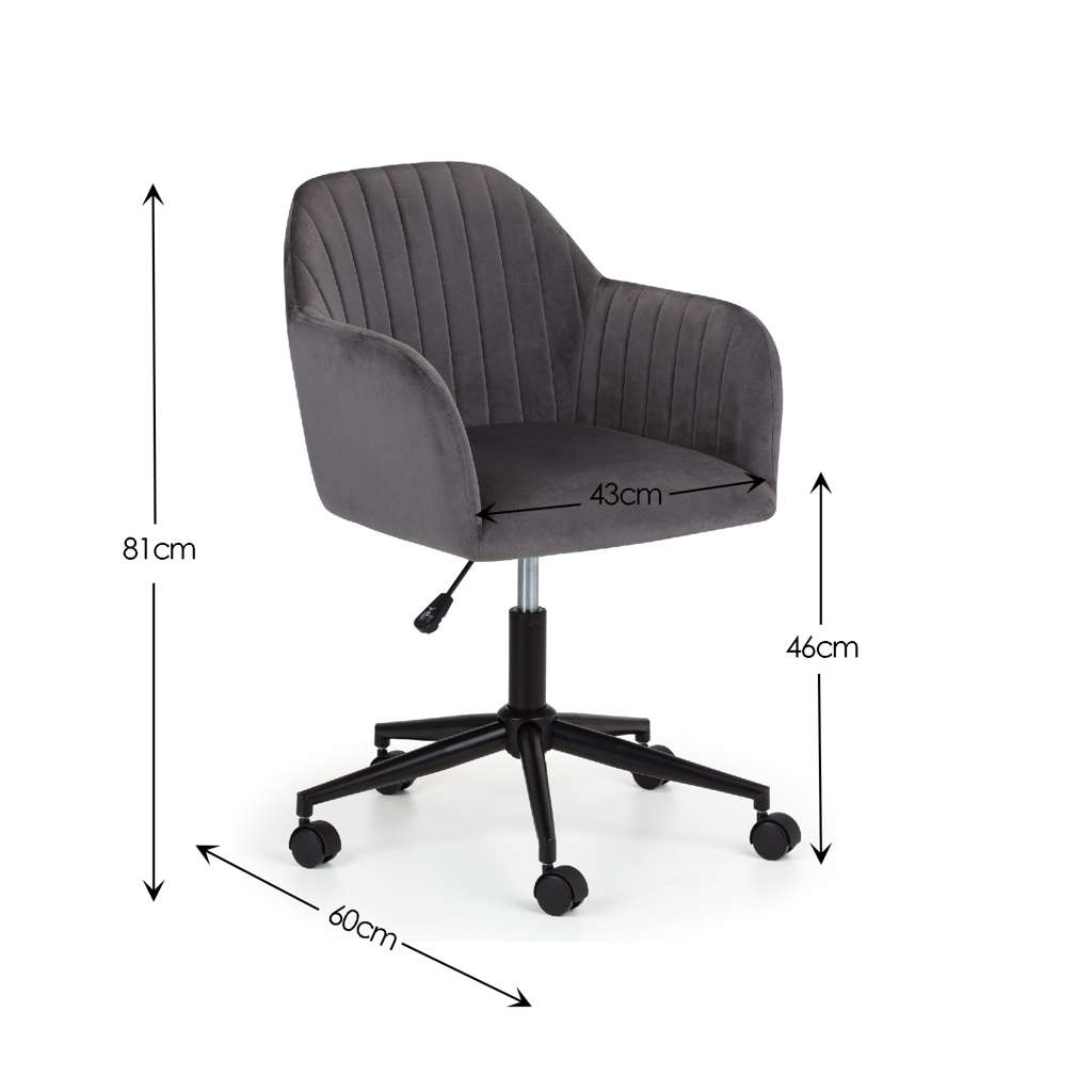 Kahlo Velvet Swivel Office Chair- Grey/Black