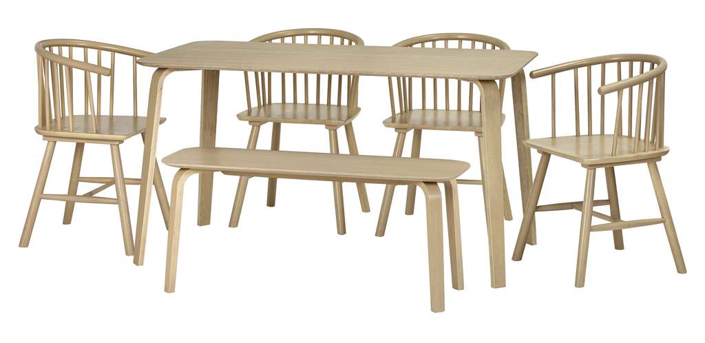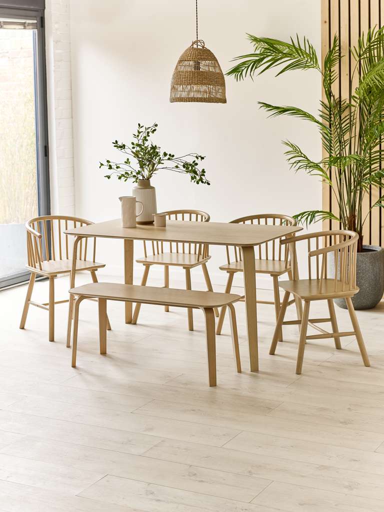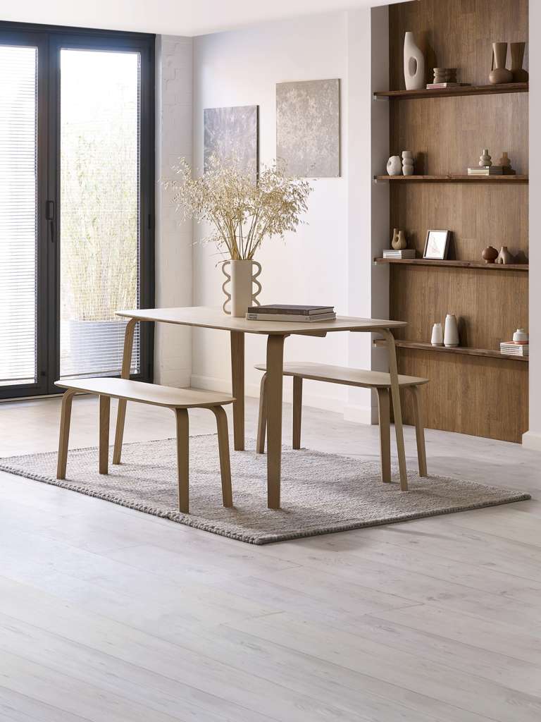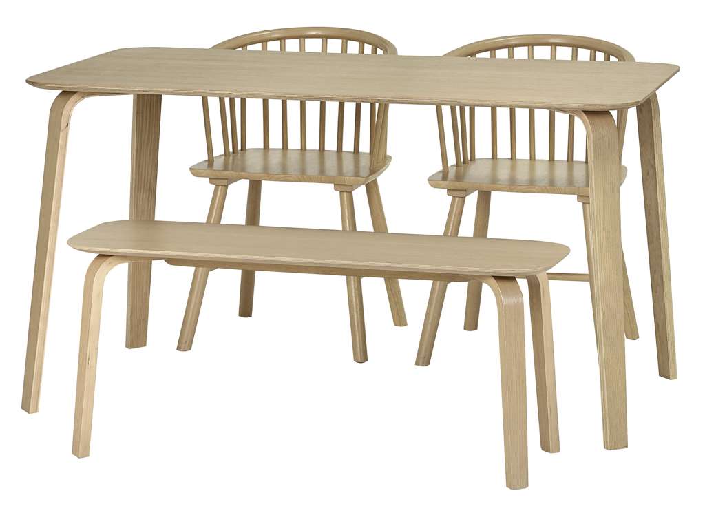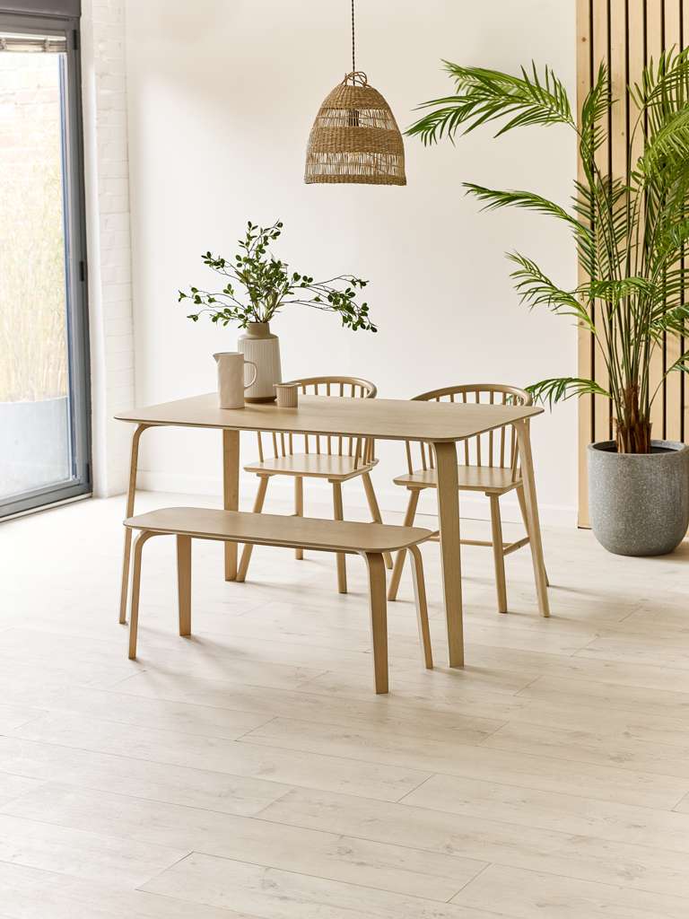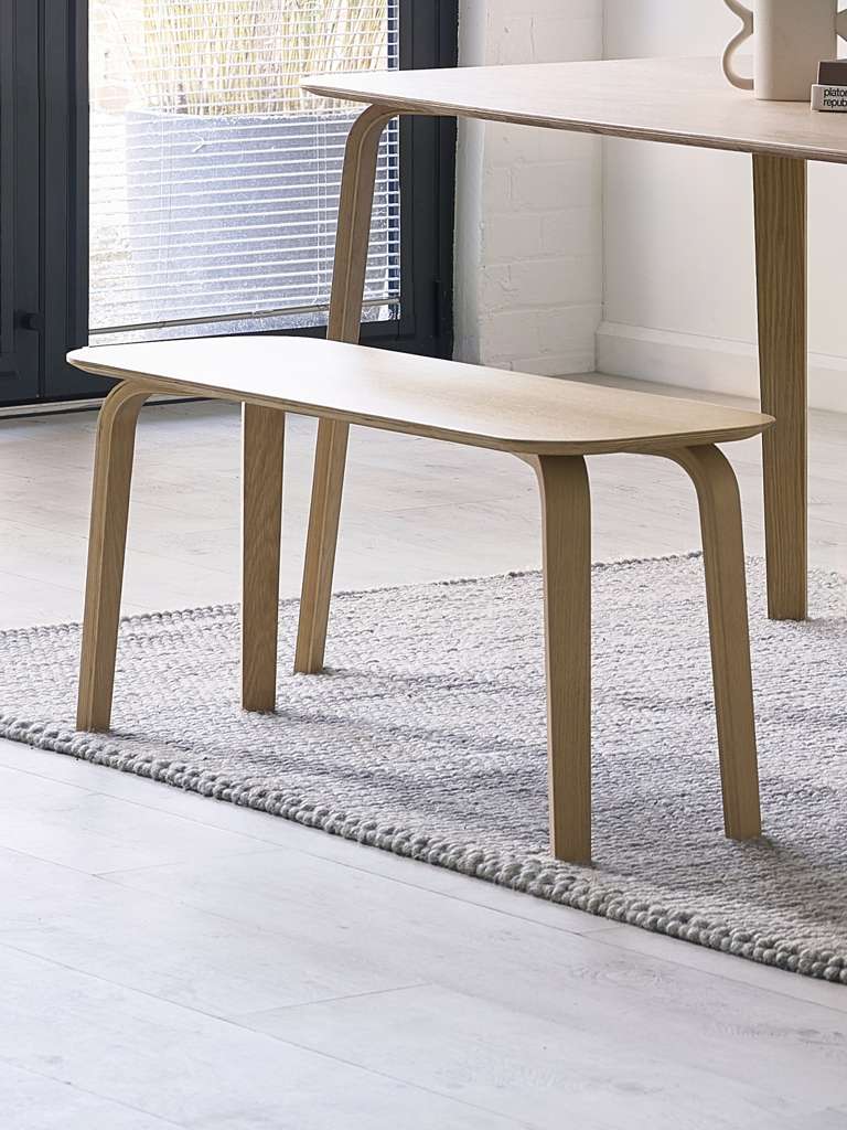 Add a touch of Scandinavian-inspired style to your home with the Kaito Bench. Featuring rounded edges and sleek splayed bent legs, it offers a soft, modern look that complements any space. Crafted from premium oak veneer and plywood with a light beech oak effect, this bench is both stylish and durable. Perfect for the additional seating at your dining table or in hallways. Simple assembly is required to enjoy this elegant and functional piece.