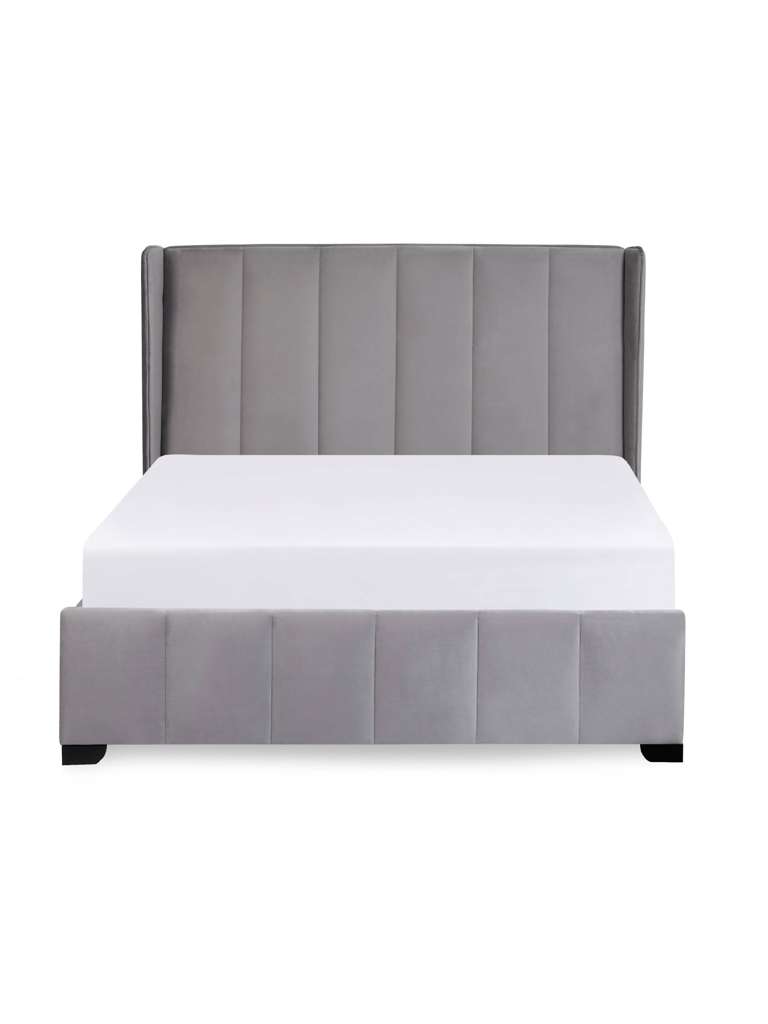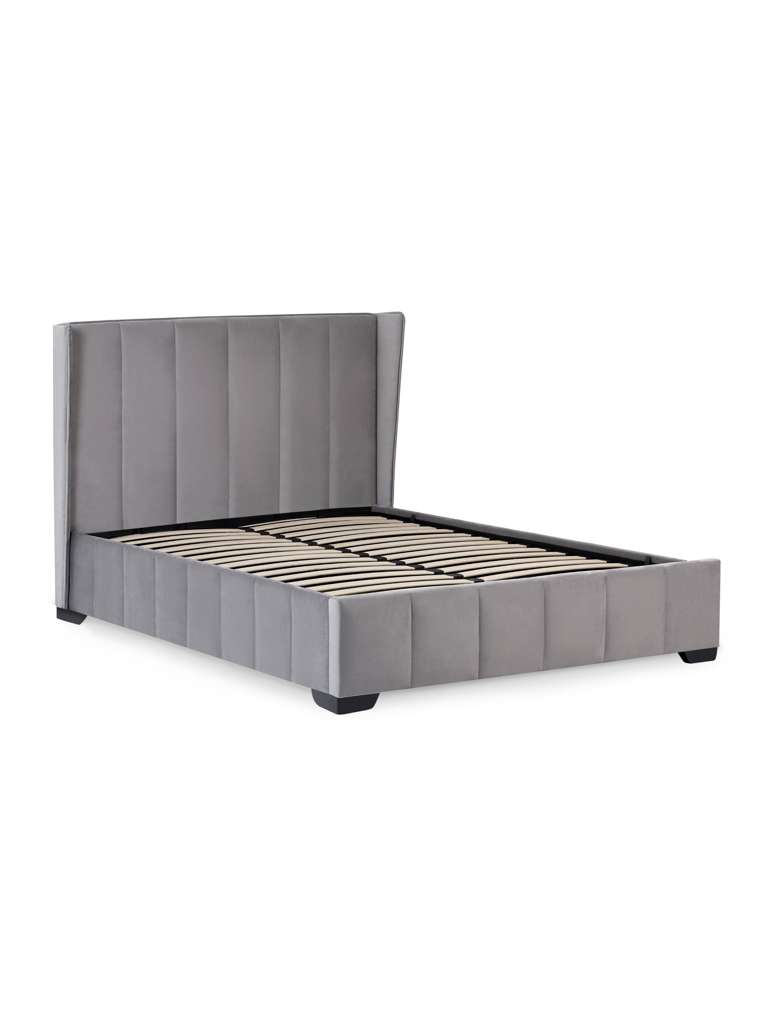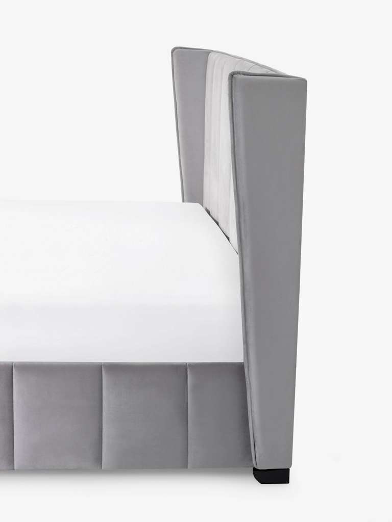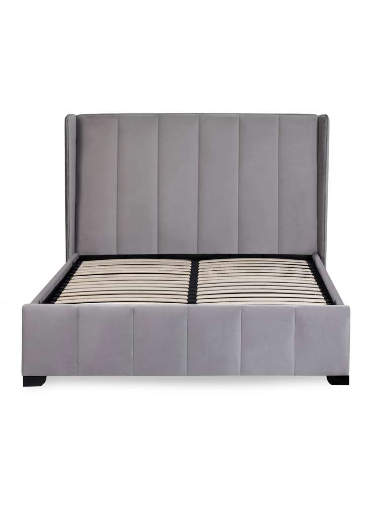 Combining timeless style with everyday practicality, this winged ottoman bed is upholstered in luxurious grey velvet for a soft and elegant finish. The tall, winged headboard adds a refined focal point while offering comfortable support for evening reading or relaxation. Lift the base to reveal spacious underbed storage, ideal for bedding, clothing, or essentials you want neatly tucked away. Thoughtfully crafted from sustainable materials, it brings a mindful approach to modern interiors. With clean lines and a smart silhouette, this bed blends comfort, storage, and subtle sophistication. Assembly required. Mattress sold separately.