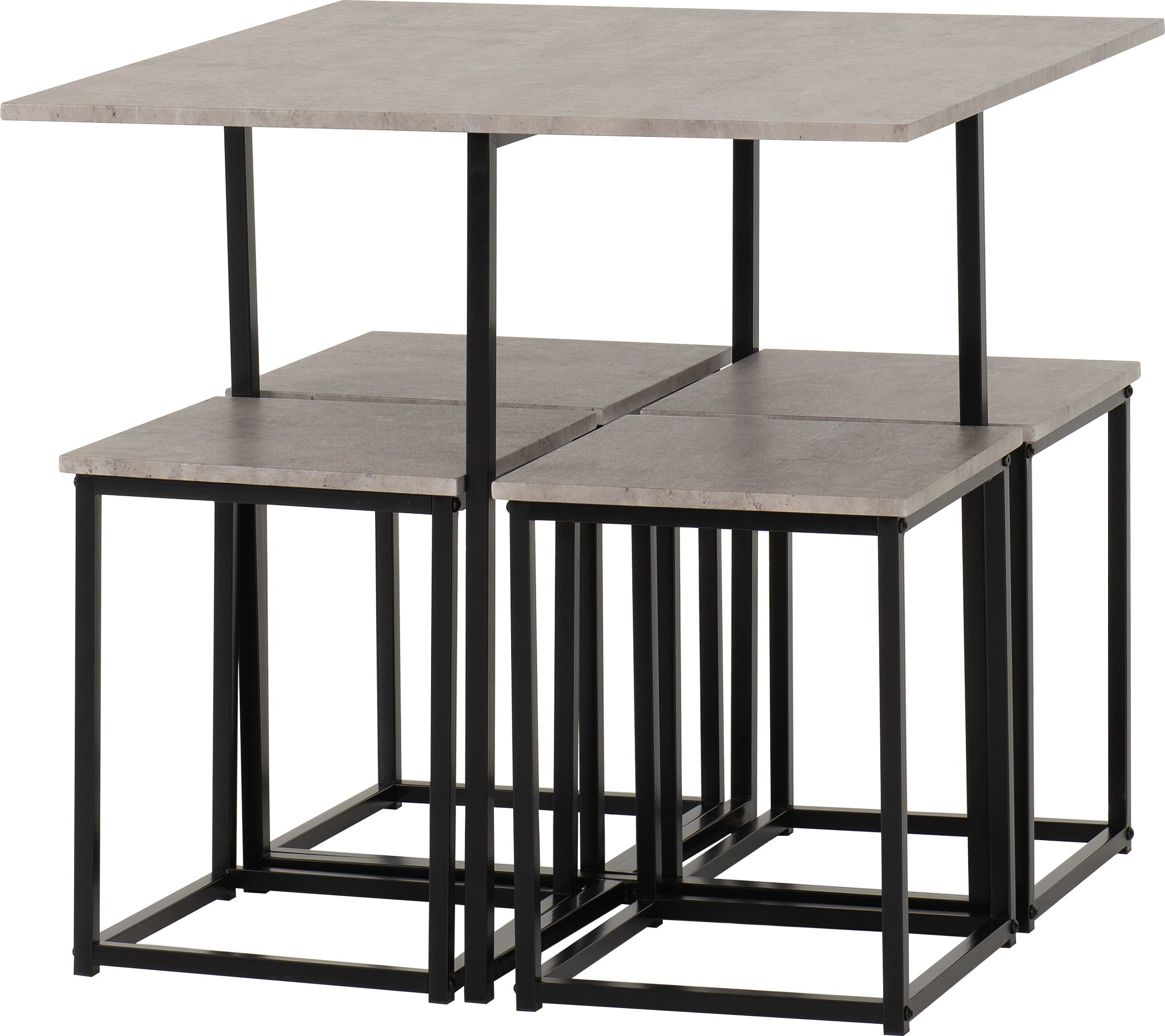 - Kent 1+4 Stowaway Dining Set - STONE EFFECT/BLACK