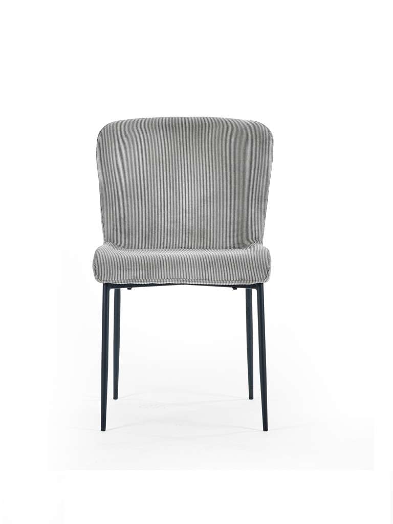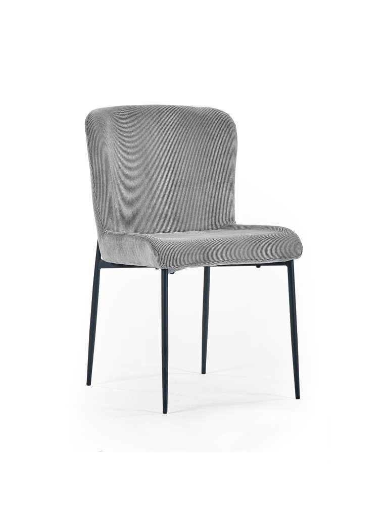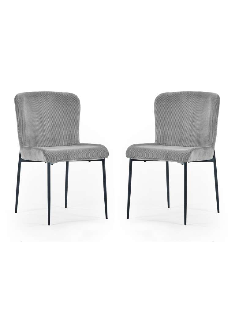 Add a touch of sophistication to your dining space with the Set of 2 Leonie Dining Chairs in Grey. Upholstered in a soft, velvet grey finish, these chairs exude luxury and timeless style. The slim black coated metal legs add a sleek touch of sophistication, while the high backs and smooth rounded contours provide both comfort and elegance in chic, armless designs. Perfect for creating a refined and inviting dining area. Minimal assembly is requiredâsimply attach the legs for a seamless setup.