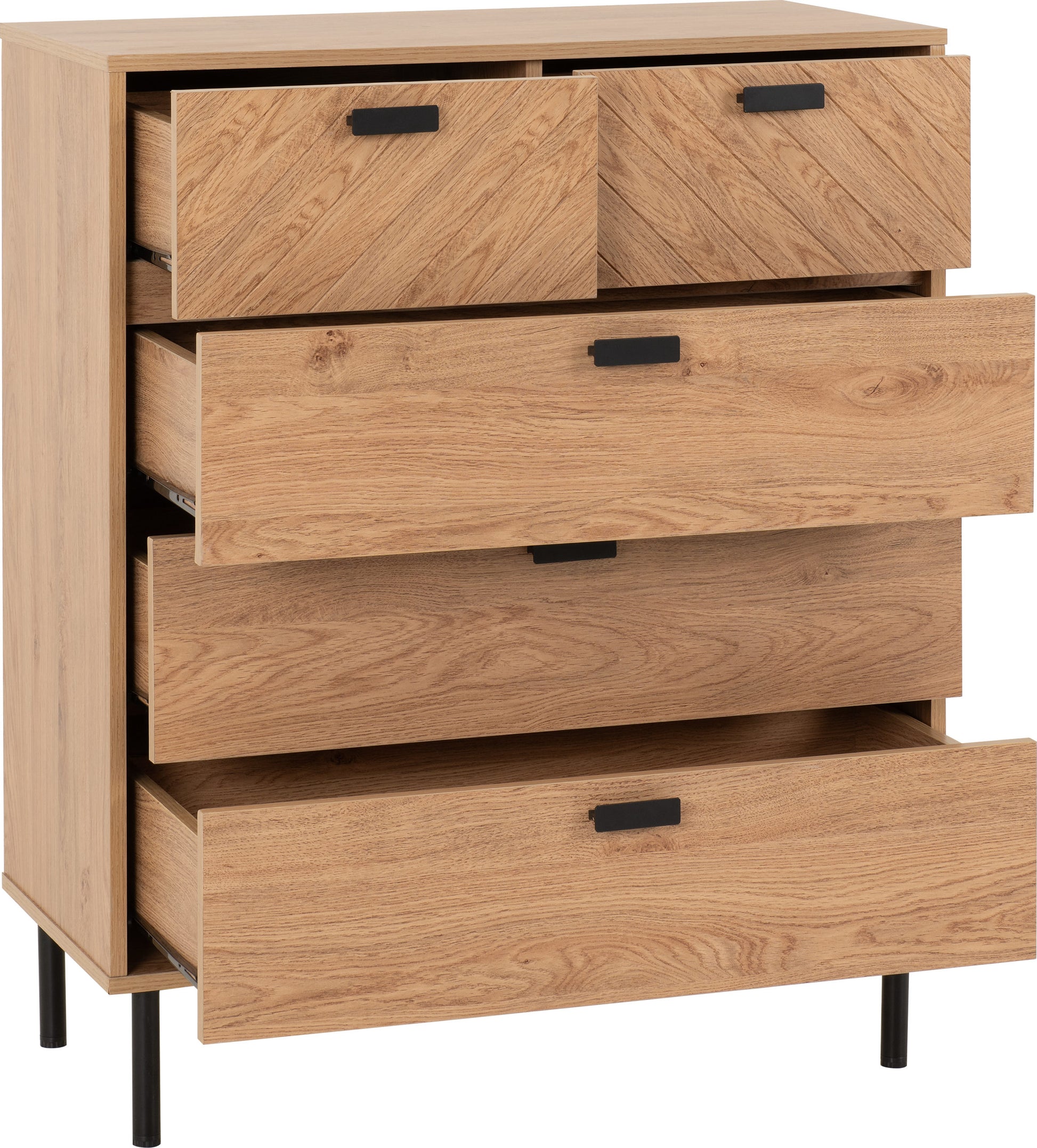 Leon 3+2 Drawer Chest - MEDIUM OAK EFFECT