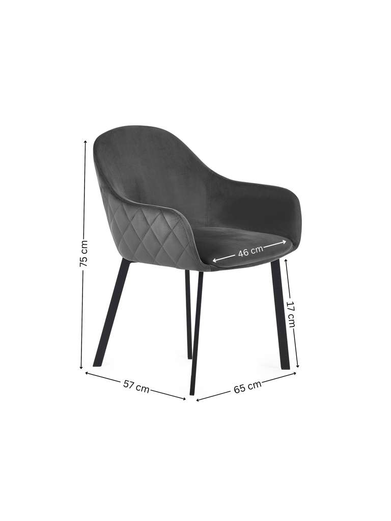 Add a touch of elegance to your dining space with the Lima Grey Velvet Chair set. Boasting a sleek, modern design, this chair features plush grey velvet upholstery accented by textured diamond stitching on the backrest. Supported by stylish black metal legs, it brings both comfort and contemporary flair to any setting.