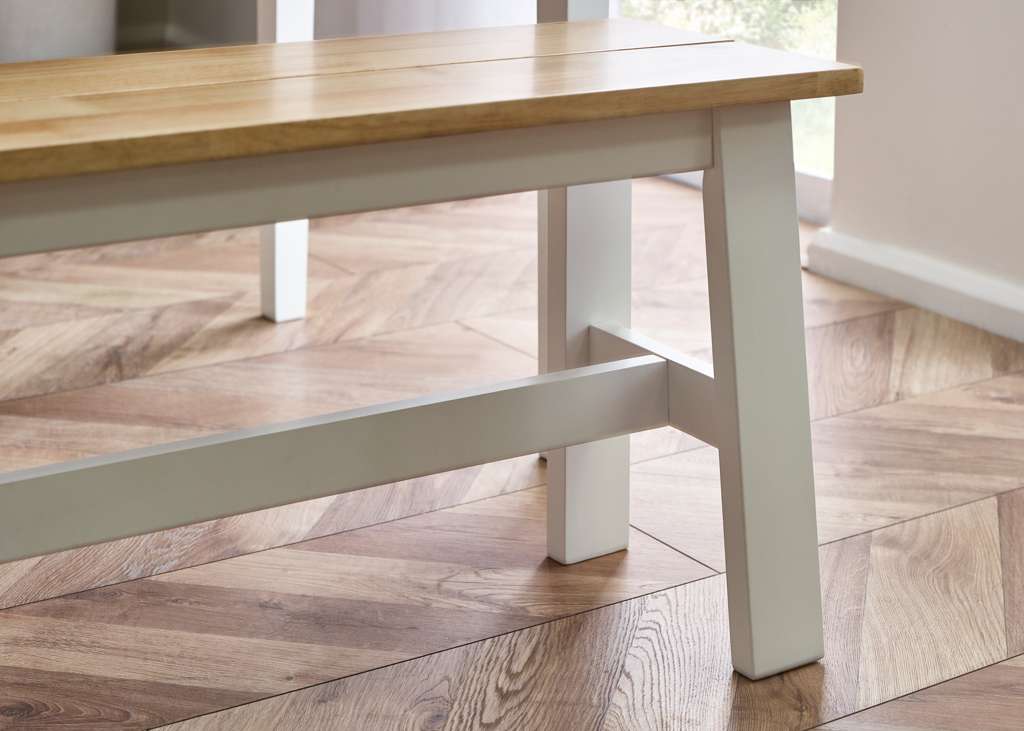 Creating the perfect classic and homely look, the Linwood Small Bench is beautifully finished in a natural light oak effect bench top with stunning white bench legs. Adding a touch of warmth and elegance to any home. This Small Bench can be paired magnificently with the Linewood Small Dining Table.