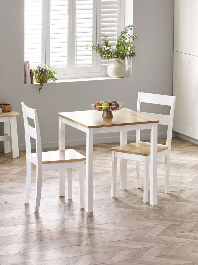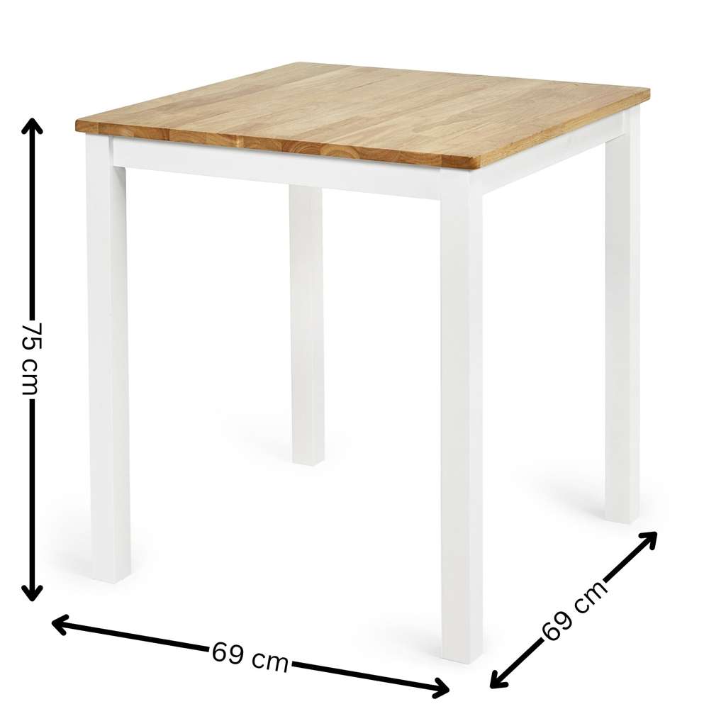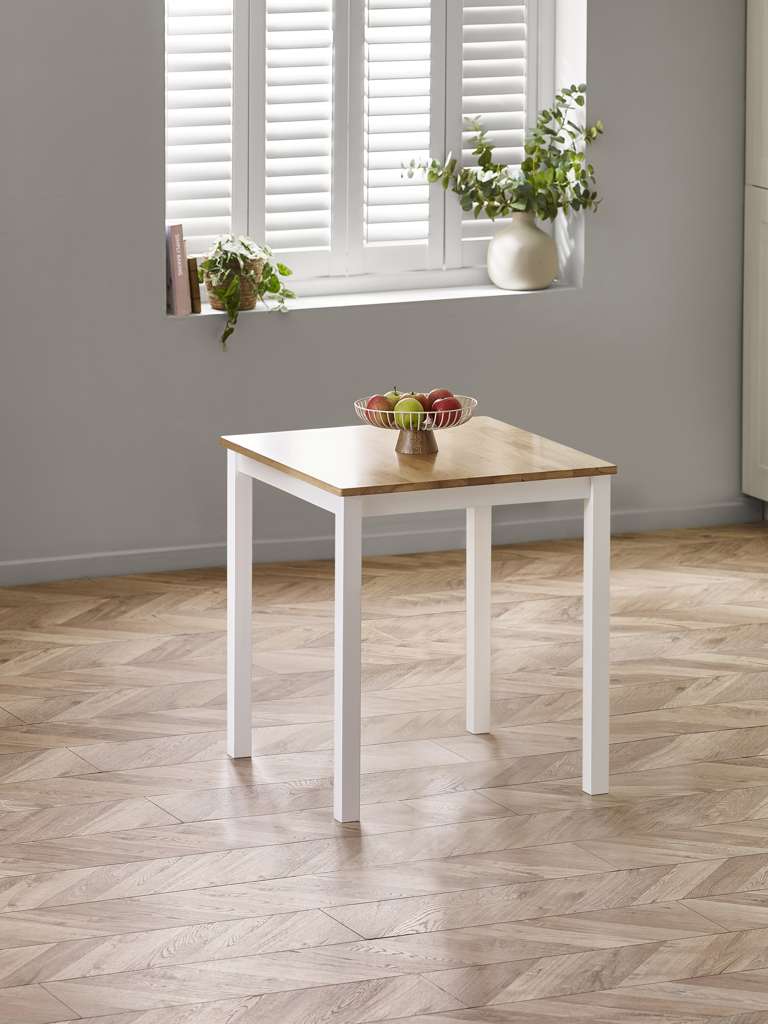 Bring timeless charm and practical style into your dining room or kitchen with this beautifully crafted square dining table. Featuring a natural light oak effect tabletop paired with fresh white legs, it offers a warm, classic look that complements both modern and traditional interiors. Compact in size yet sturdy in design, itâs ideal for smaller spaces while providing ample room for everyday meals or casual gatherings. Built from durable materials to withstand regular use while maintaining its elegant appeal. Minimal assembly required. Chairs sold separately.