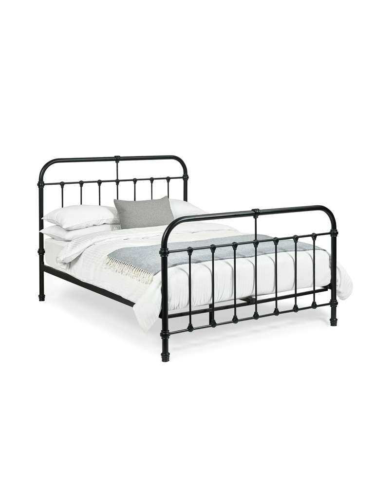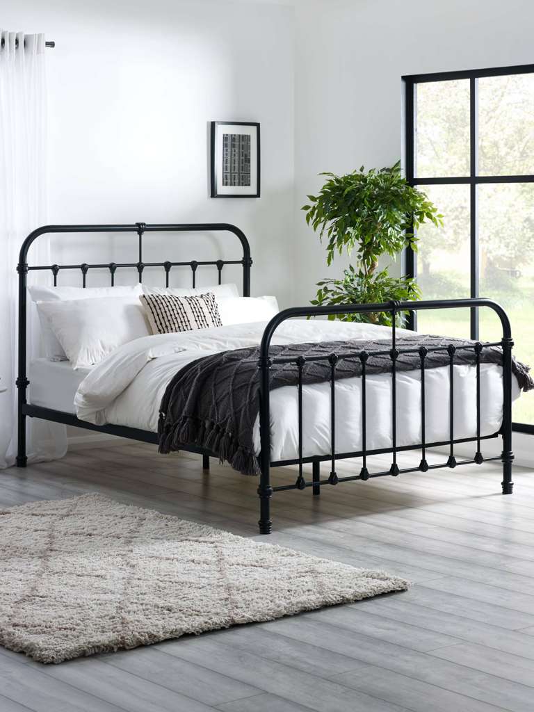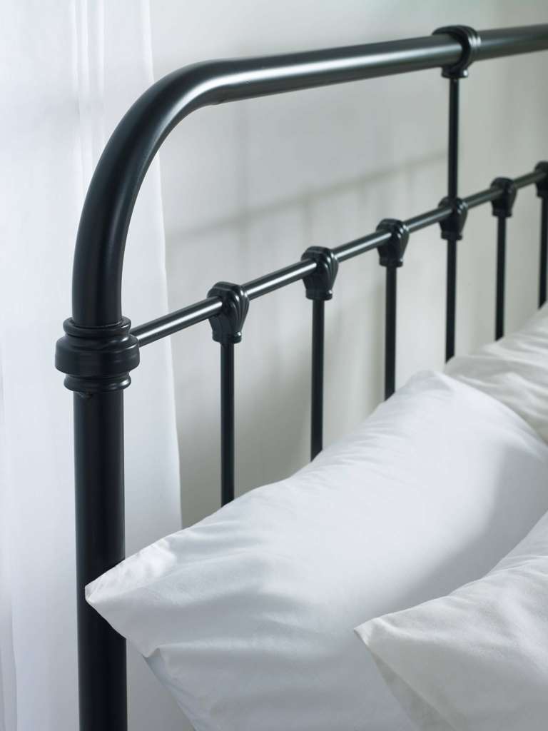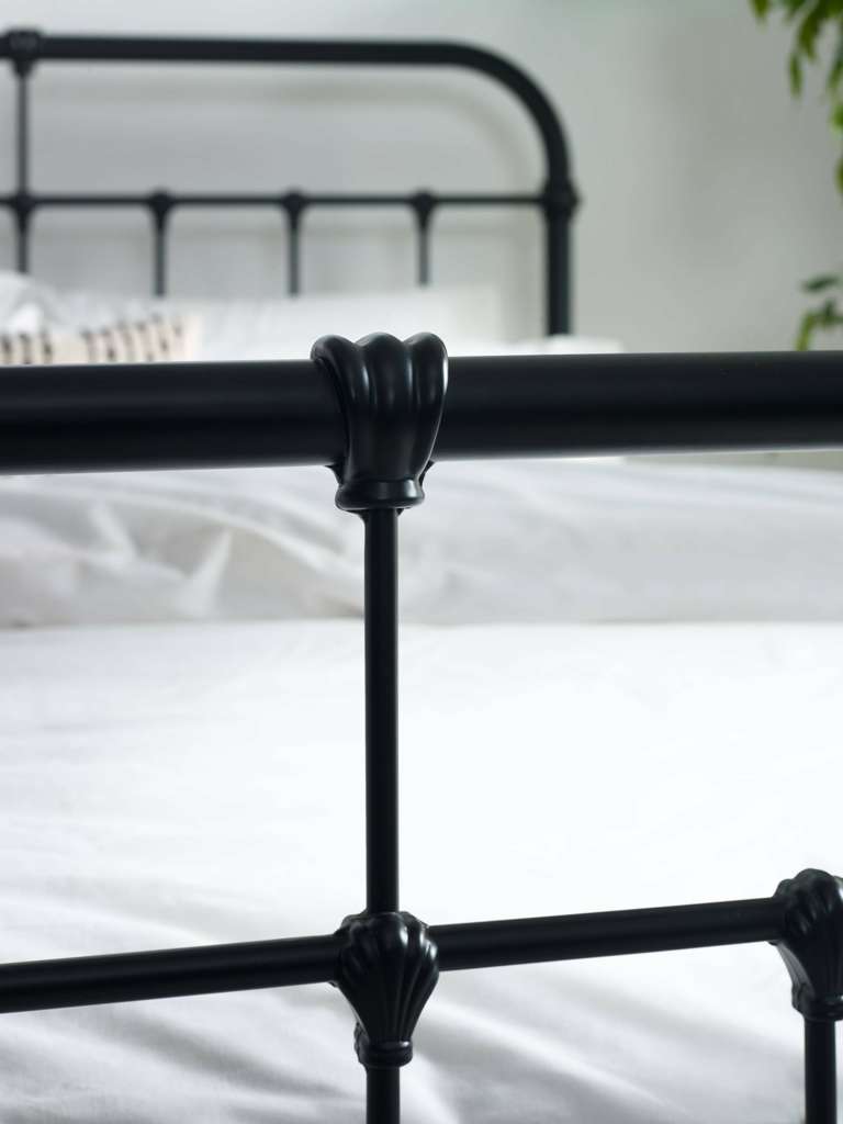 Add a touch of timeless elegance to your bedroom with this 120cm black satin metal bed. Crafted with a beautifully detailed metal frame, it effortlessly combines vintage charm with a sleek, modern design. The sturdy construction ensures lasting durability, while the smooth black satin finish enhances its classic appeal. Designed for both style and support, this bed is the perfect statement piece for those who appreciate the blend of traditional and contemporary design. Minimal assembly required. Mattress sold separately.