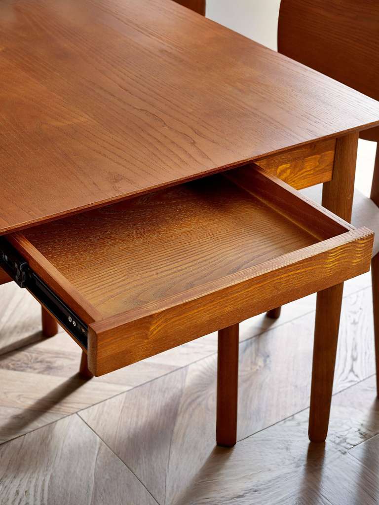 A gorgeous retro-inspired style, the Lowry Extending Dining Table is constructed from an exquisite cherry ash wood veneer, complemented by beautifully slender legs to create an effortless look for any dining room space. It features two stunning push-open drawers and an ideal extension system creating the perfect storage space for any essentials.