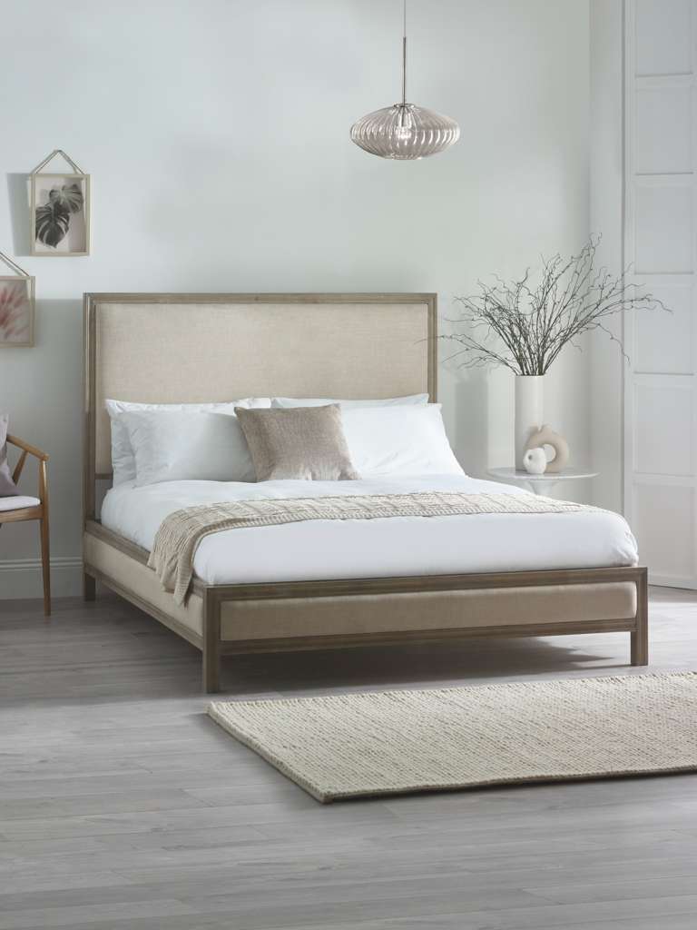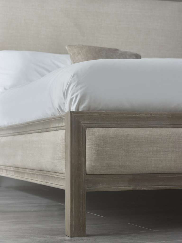 Elevate your bedroom into a luxurious haven with the Lucie Bed, a true embodiment of modern elegance. Adorned with beautiful ivory upholstery, this panel bed radiates warmth and sophistication, creating an inviting atmosphere. The high headboard serves as a striking focal point, adding a touch of refinement, while the exquisite wooden welt border enhances its tailored finish. Experience restful nights in style and comfort with this exceptional piece. Mattress sold separately.