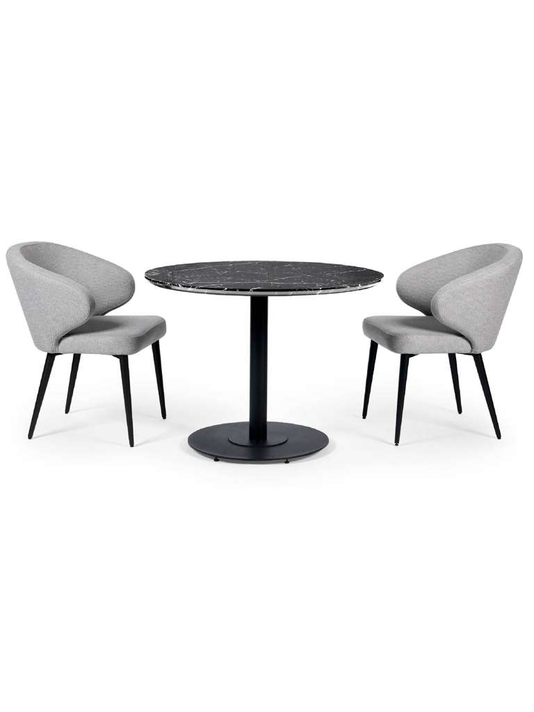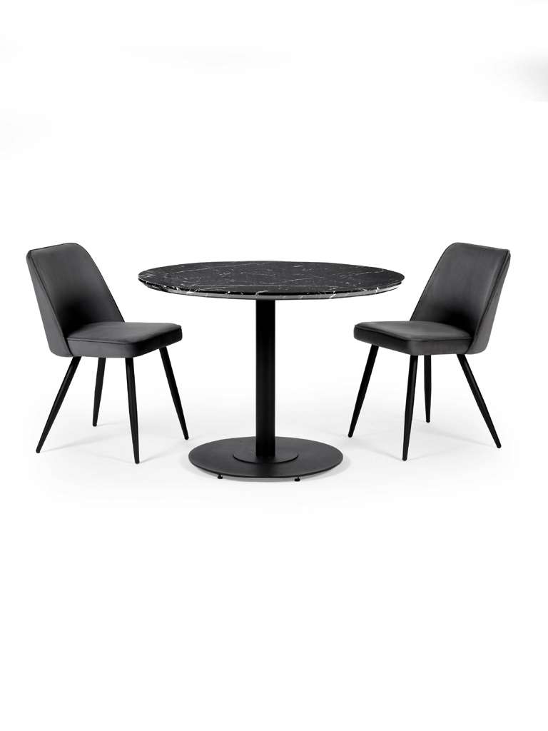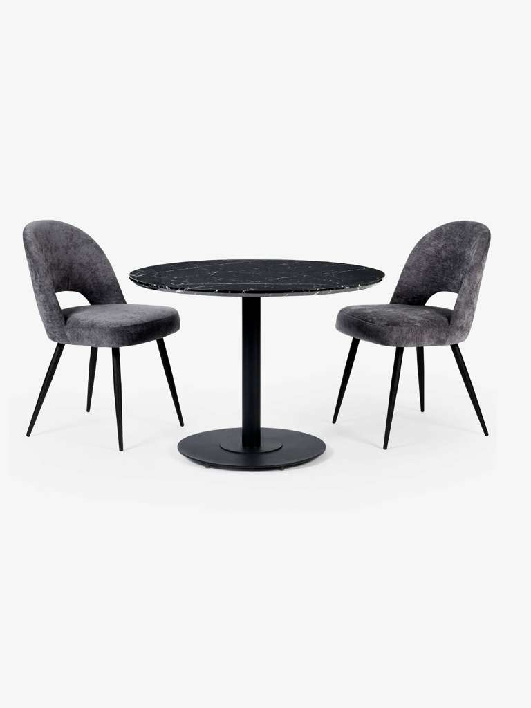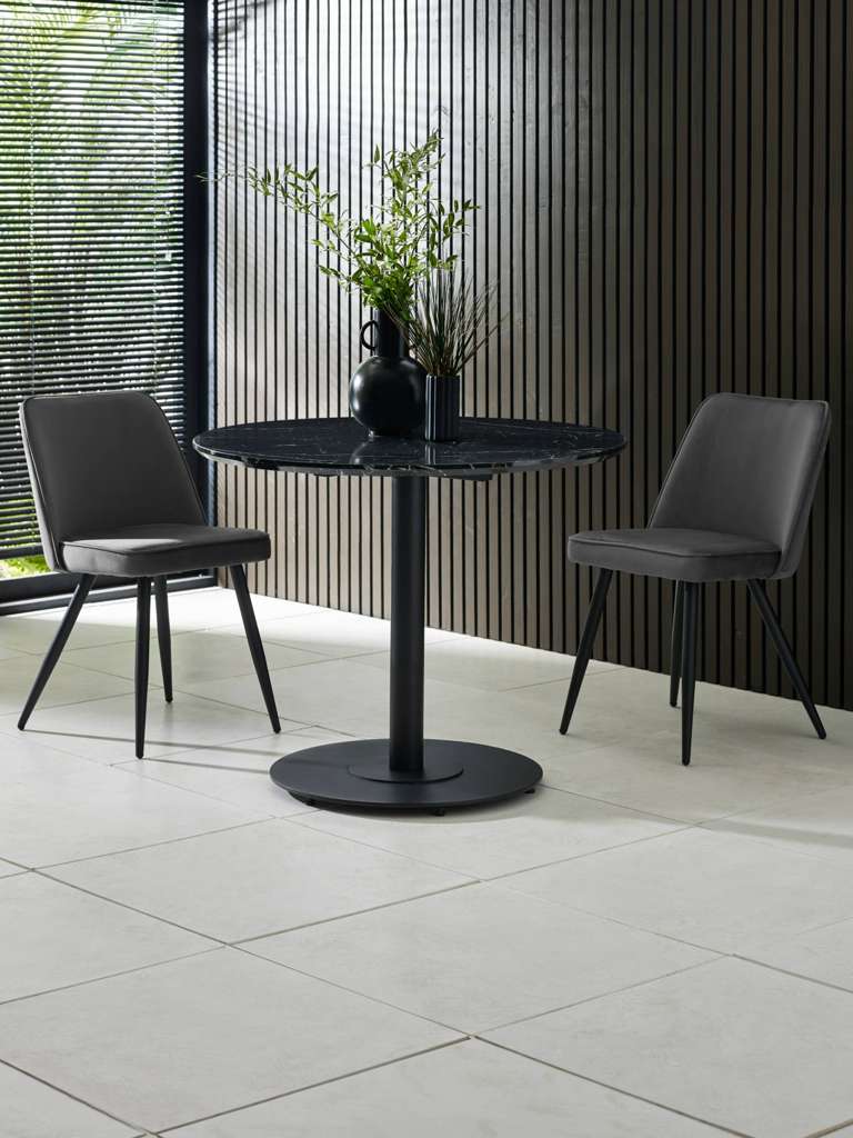 Bring sleek sophistication to your dining space with the Luca Black Marble Round Dining Table â 80 cm, designed for modern living and perfect for compact areas. The striking black marble-effect finish paired with a sleek black pedestal base creates a bold yet elegant centerpiece. Its refined design enhances any décor, offering a stylish and inviting setting for casual meals and intimate gatherings. With easy assembly and timeless appeal, this table seamlessly combines practicality with contemporary charm.