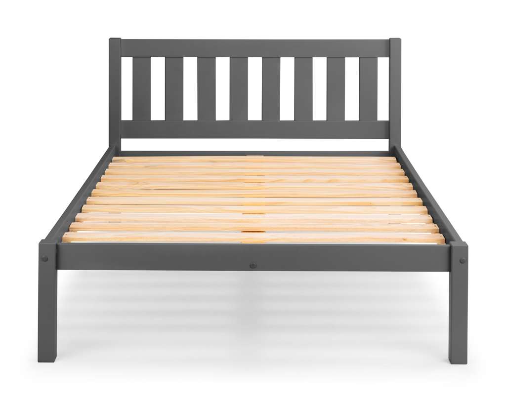 Crafted from solid pine with an anthracite lacquer, the Luna bed is perfect for a wide range of traditional and contemporary bedroom décor with its simple, yet stunning design. Offering a strong, durable construction, this bed features a solid slatted base, ensuring a comfortable night's sleep. The perfect match for the Julian Bowen Radley Bedroom collection.