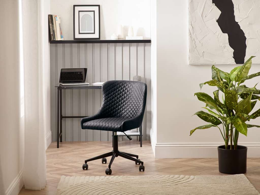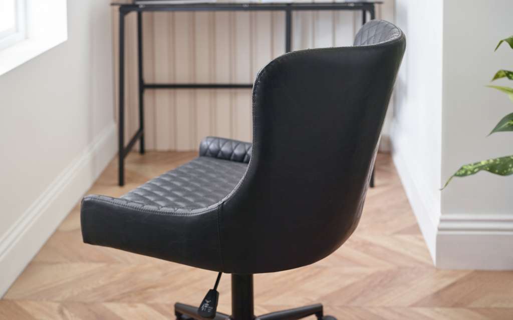 Step into the world of sophistication and comfort with the Luxe Office Chair in Black Faux Leather. This chair effortlessly combines elegance with contemporary flair, boasting exquisite faux leather upholstery adorned with opulent quilted detailing. Complete with five sleek black coasters for effortless mobility and a height-adjustable mechanism for customisable comfort, it caters to your individual preferences while enhancing your overall comfort and productivity. Minimal assembly is required, ensuring a hassle-free setup.