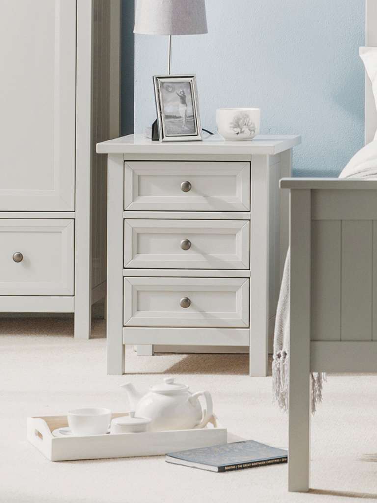 Maine is an elegant New England style range of bedroom furniture. The combination of exquisite dove grey lacquered finish with characteristic side panelling and detailed chamfered cabinetry makes for a soothing and refined aesthetic with timeless appeal, while delicate pewter handles add the perfect finishing touch.