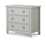 Maine is an elegant New England style range of bedroom furniture. The combination of exquisite dove grey lacquered finish with characteristic side panelling and detailed chamfered cabinetry makes for a soothing and refined aesthetic with timeless appeal, while delicate pewter handles add the perfect finishing touch. The Maine 3 drawer chest offers three large storage drawers.