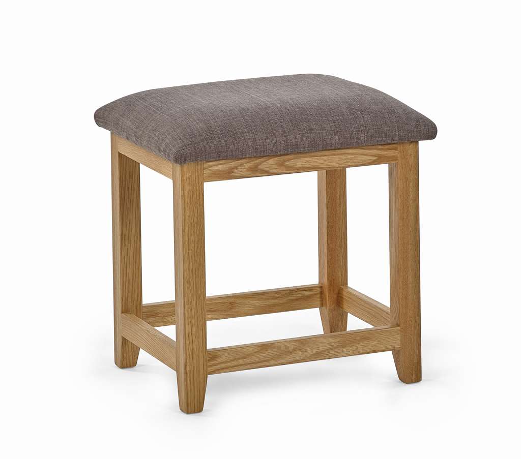 Crafted from solid oak and oak veneers this dressing table and stool set is the perfect addition to any bedroom space. Combining durability and style, with 3 generously sizes drawers providing copious amounts of storage space. Finished with round silver knobs and partnered with a comfortable and robust grey pad stool