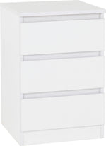 Bring warmth and everyday style to your home with the Malvern 3 Drawer Bedside in a White finish. Thoughtfully designed for busy family spaces, it offers generous storage for everyday life to keep life neatly organised. Clean lines and a durable build make it an easy fit for both modern and classic rooms. Built to look good and work hard for years to come.