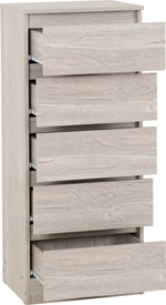 Malvern 5 Drawer Narrow Chest - URBAN SNOW