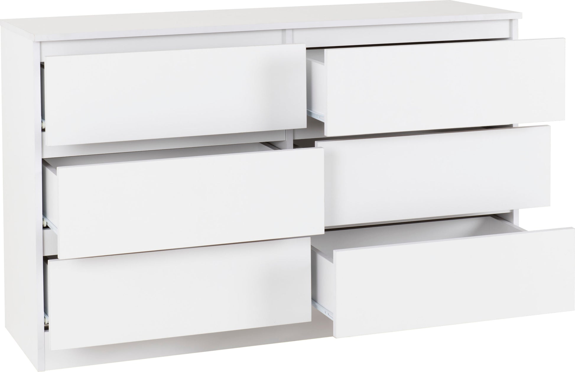 Bring warmth and everyday style to your home with the Malvern 6 Drawer Chest in a White finish. Thoughtfully designed for busy family spaces, it offers generous storage for everyday life to keep life neatly organised. Clean lines and a durable build make it an easy fit for both modern and classic rooms. Built to look good and work hard for years to come.