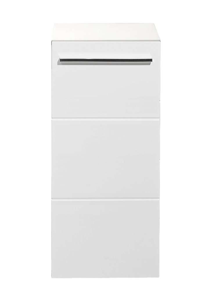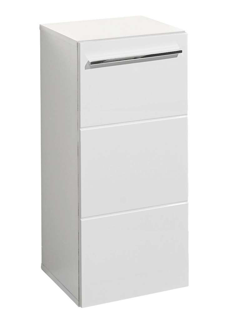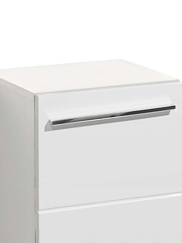 Introducing the Mandy Cabinet in sleek white gloss, a perfect blend of modern design and practical storage. The striking horizontal notches design adds a contemporary flair, making it a stylish addition to any space. Inside, you'll find a spacious cupboard complemented by two generous shelves, providing ample room for all your essentials, from toiletries to linens. The sleek long silver handle enhances the cabinet's aesthetic while offering easy access to your items.