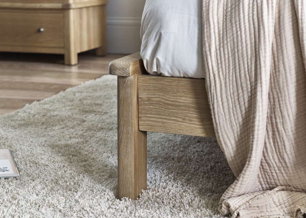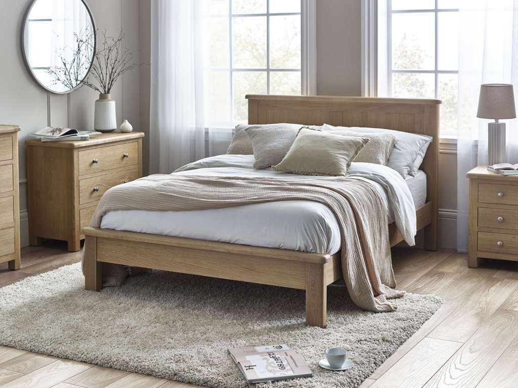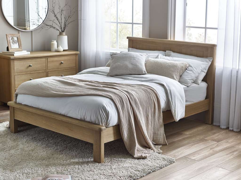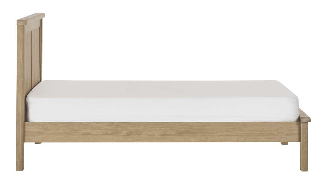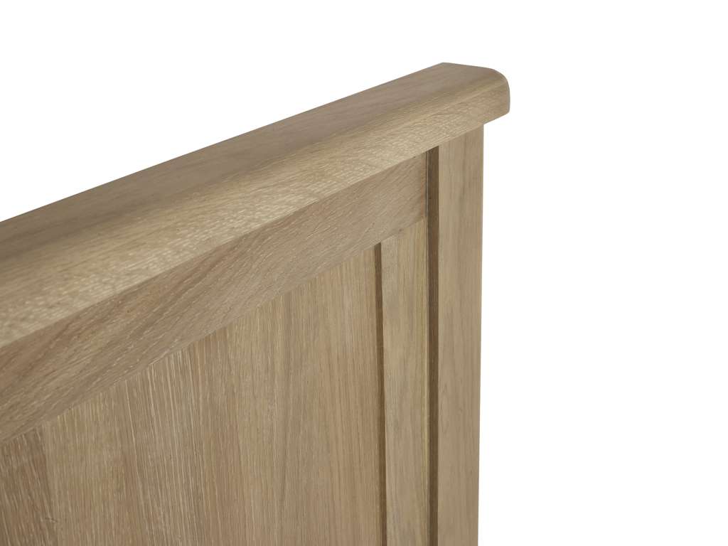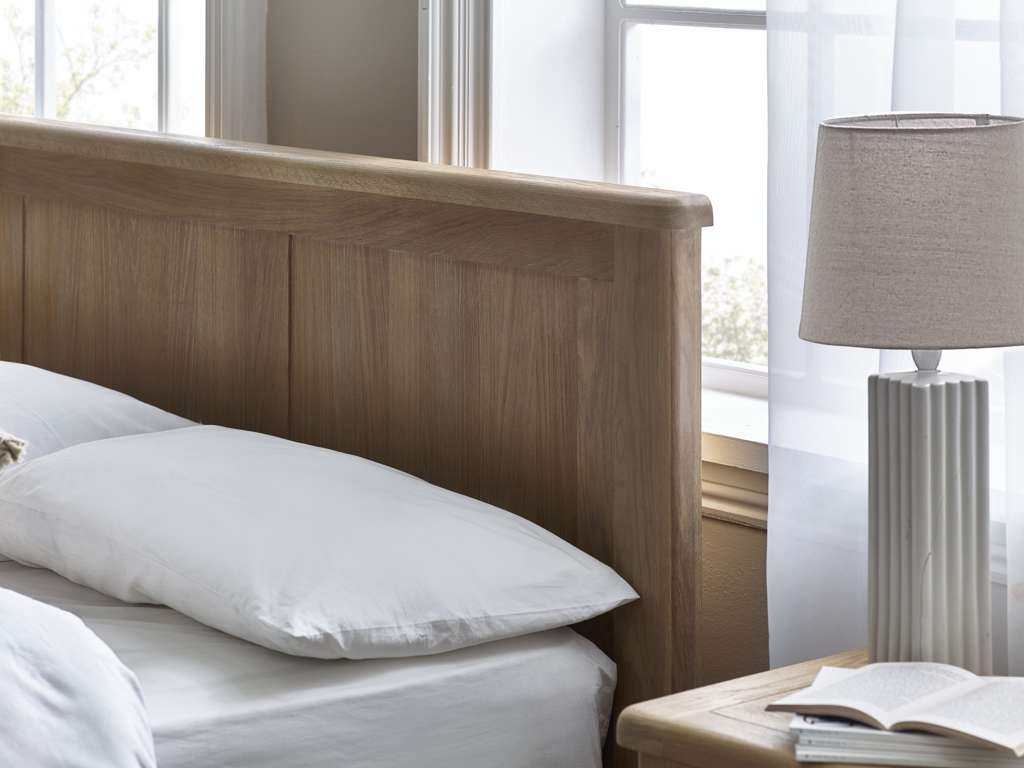 The Memphis Bed effortlessly blends style and comfort with its distinctive curved edges and paneled headboard, finished in Limed Oak, adding a touch of sophistication to any bedroom. Its wooden slatted base offers excellent support, ensuring a restful night's sleep. Combining elegant design with practical comfort, this bed transforms your bedroom into a sanctuary of relaxation and serves as the perfect centerpiece for your space. Mattress sold separately.