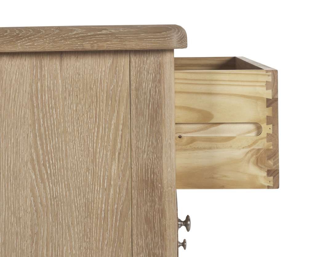 The Memphis 6 Drawer Wide Chest is finished in a gorgeous limed oak, providing a smooth curved edging that will add a timeless look to any bedroom space. This sleek design features six wide drawers providing convenient storage space for all your necessities which are elegantly finished with bulbous polished silver handles.