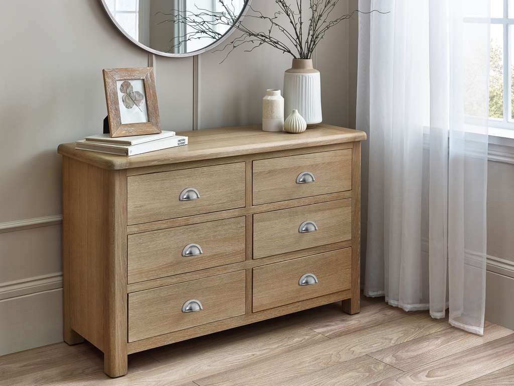 - Memphis Limed Oak 6 Drawer Wide Chest