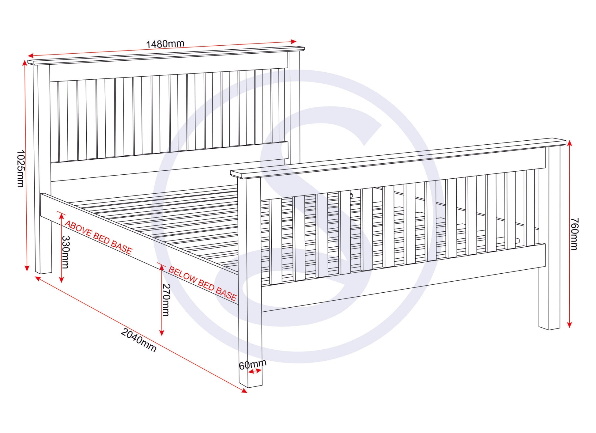 Monaco 4'6" Bed High Foot End - White
