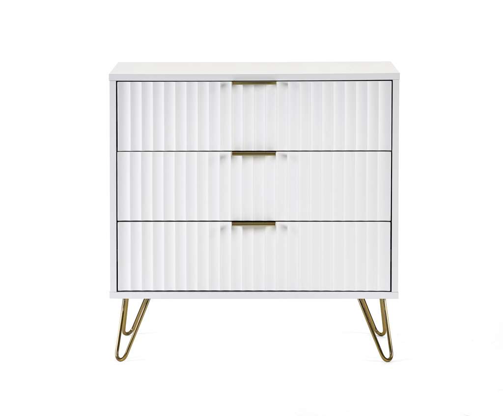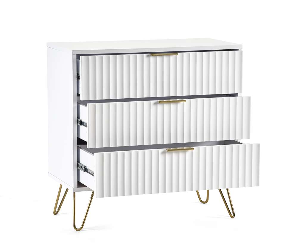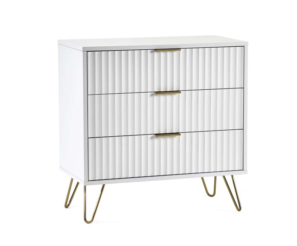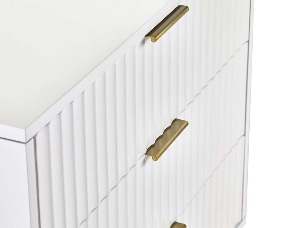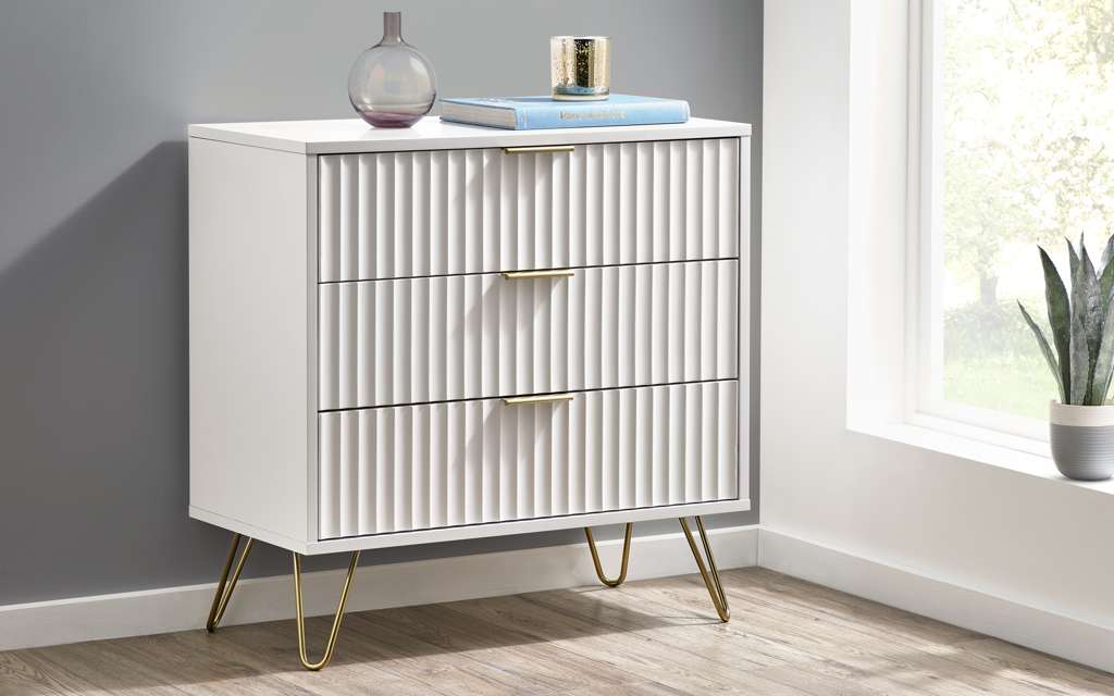 Sculpted fronts are a look that you do NOT want to miss out on. Murano is inspired by chic design â the brushed gold accents promote a high-end aesthetic that is on-trend but also perfect for various interior styles. How about pairing this collection with velvet sofas or bed to create the perfect feel for your home? This collection includes white finished bedroom pieces, and black finished living.